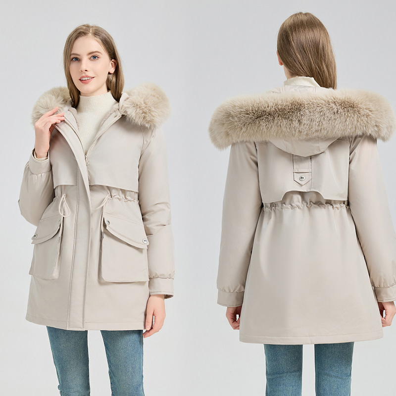 加绒加厚大毛领派克服2025新款羽绒棉服棉衣大码外套女胖MM秋冬款