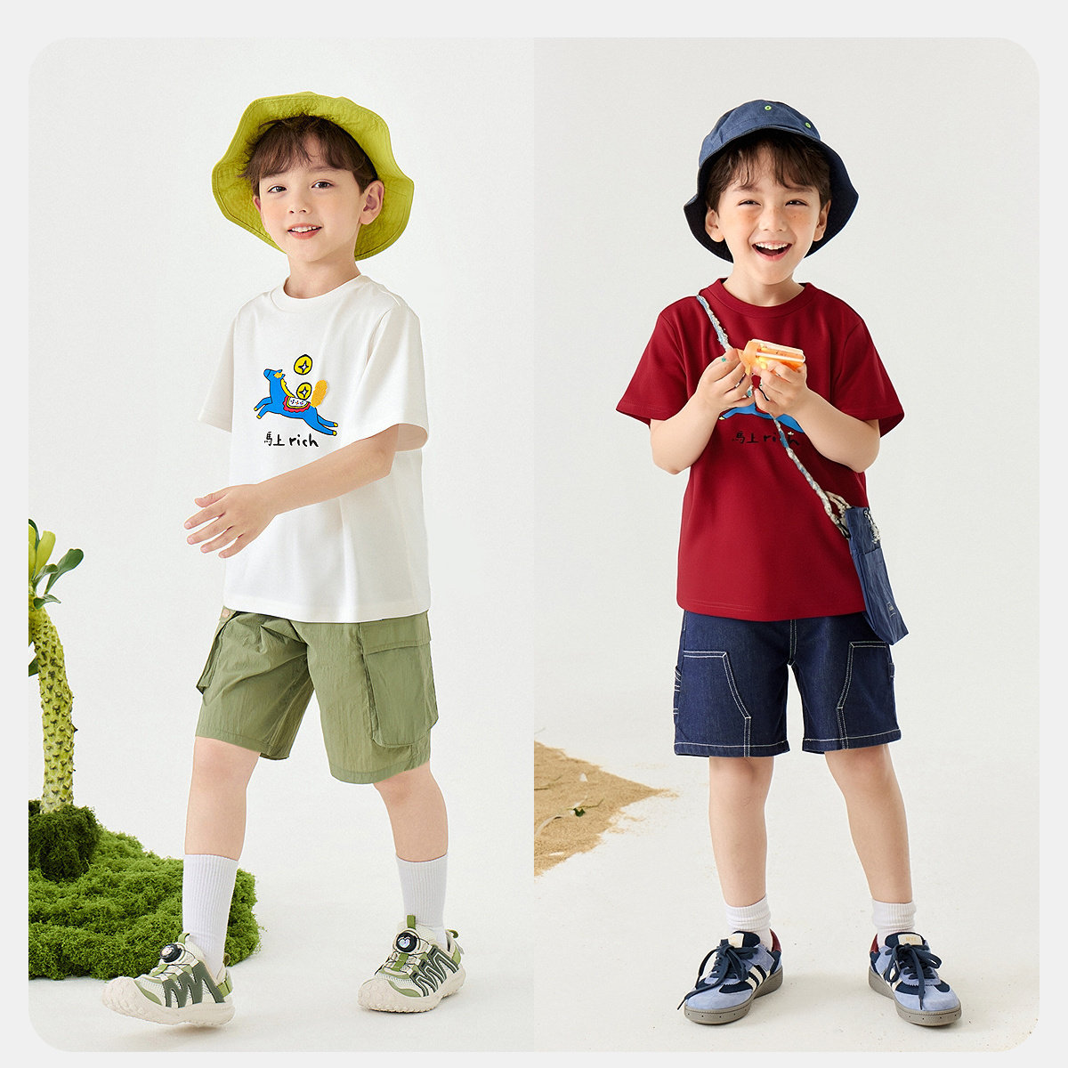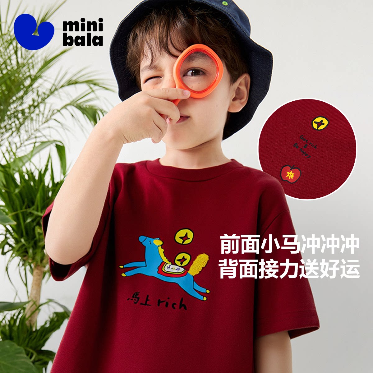 【亲子装】迷你巴拉巴拉男女童春季短袖T恤一家三口透气儿童上衣
