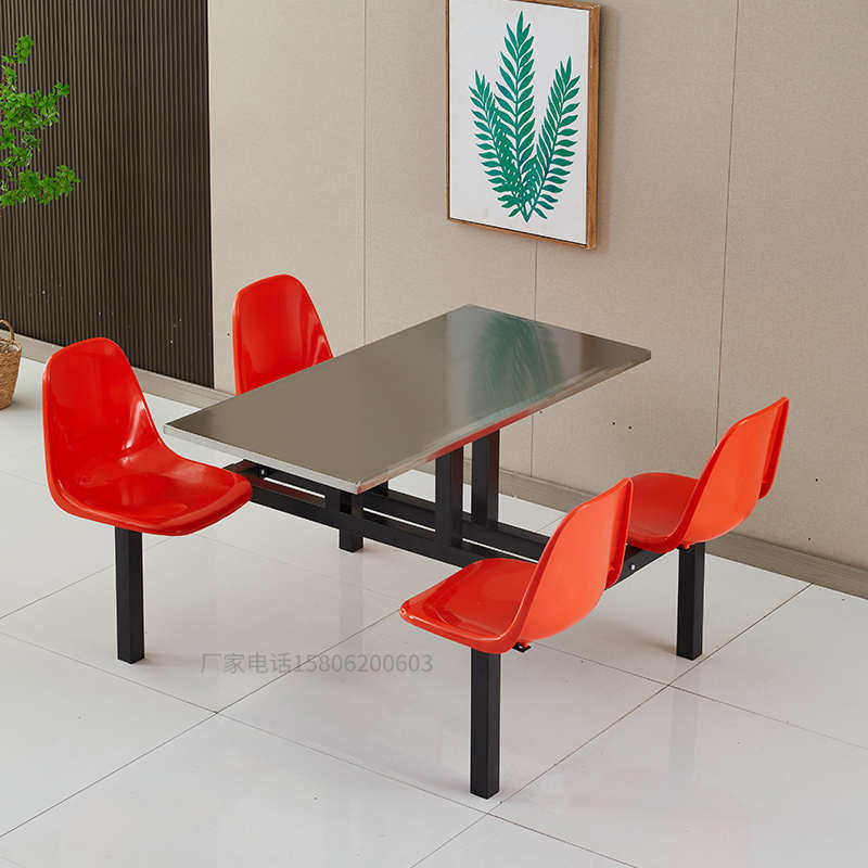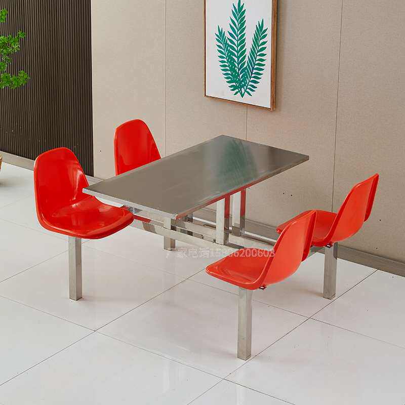 公司食堂餐桌椅不锈钢单位员工4人学校学生餐厅职工连体餐桌组合