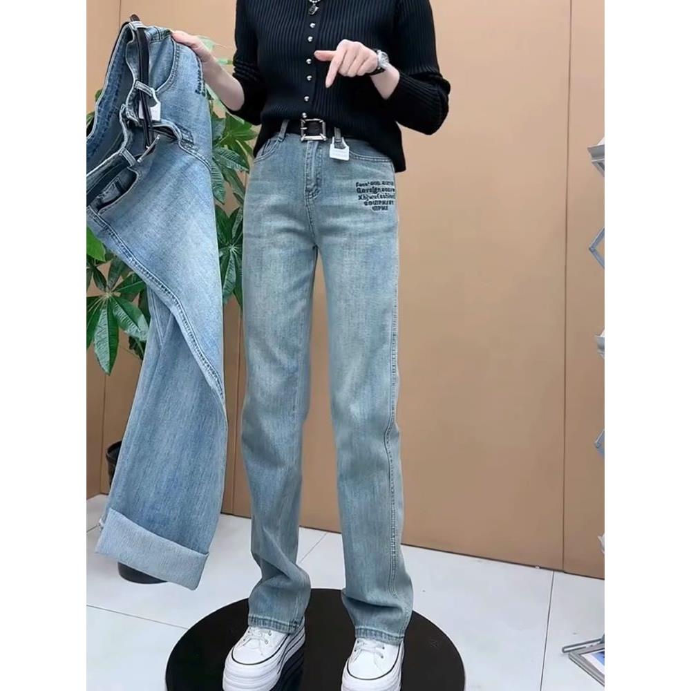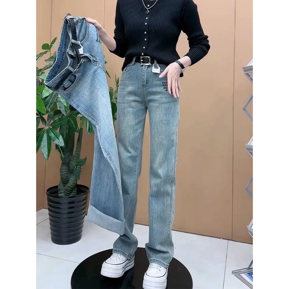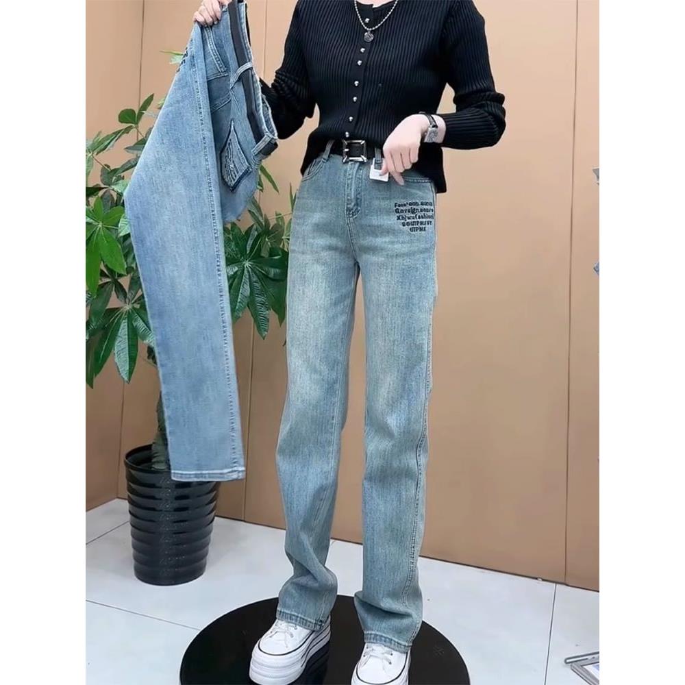 梨形身材弹力直筒牛仔裤女2025年新款大码胖mm高腰显瘦窄版阔腿裤