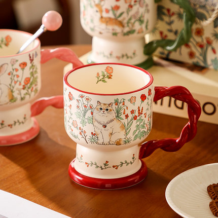 复古油画般陶瓷马克杯小众咖啡杯