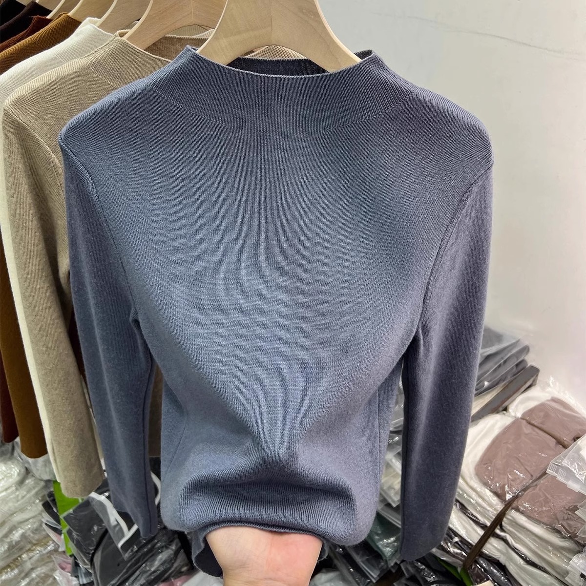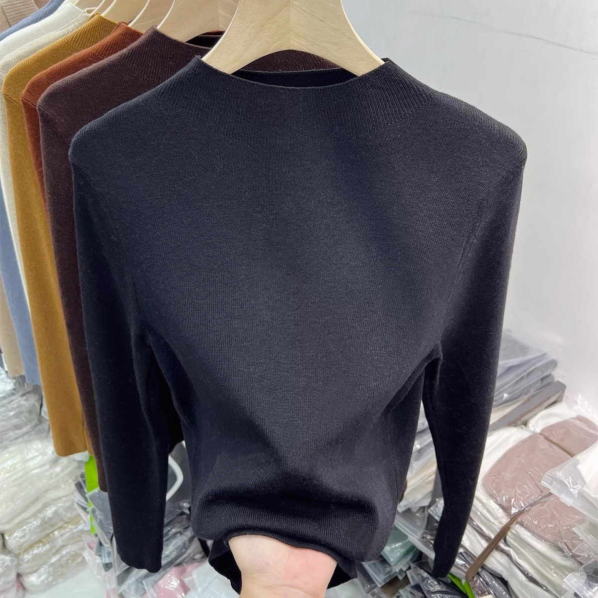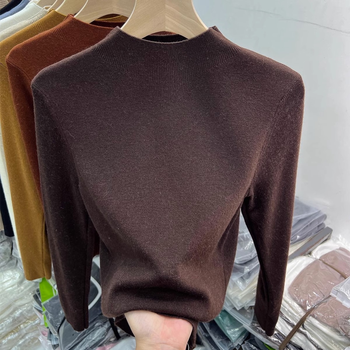 秋冬半高领针织衫女长袖内搭修身软糯打底衫羊毛中领高弹洋气毛衣