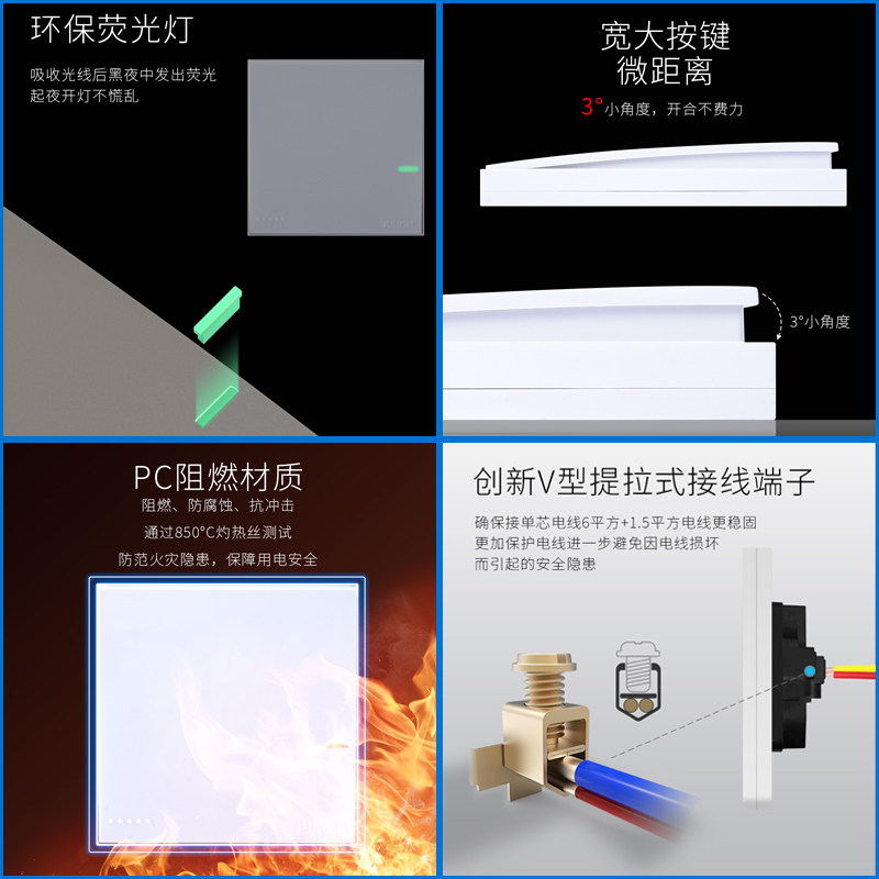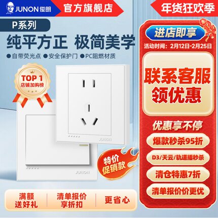 俊朗官方开关插座USB五孔86型家用墙壁一开多孔暗装大板面板P牙白