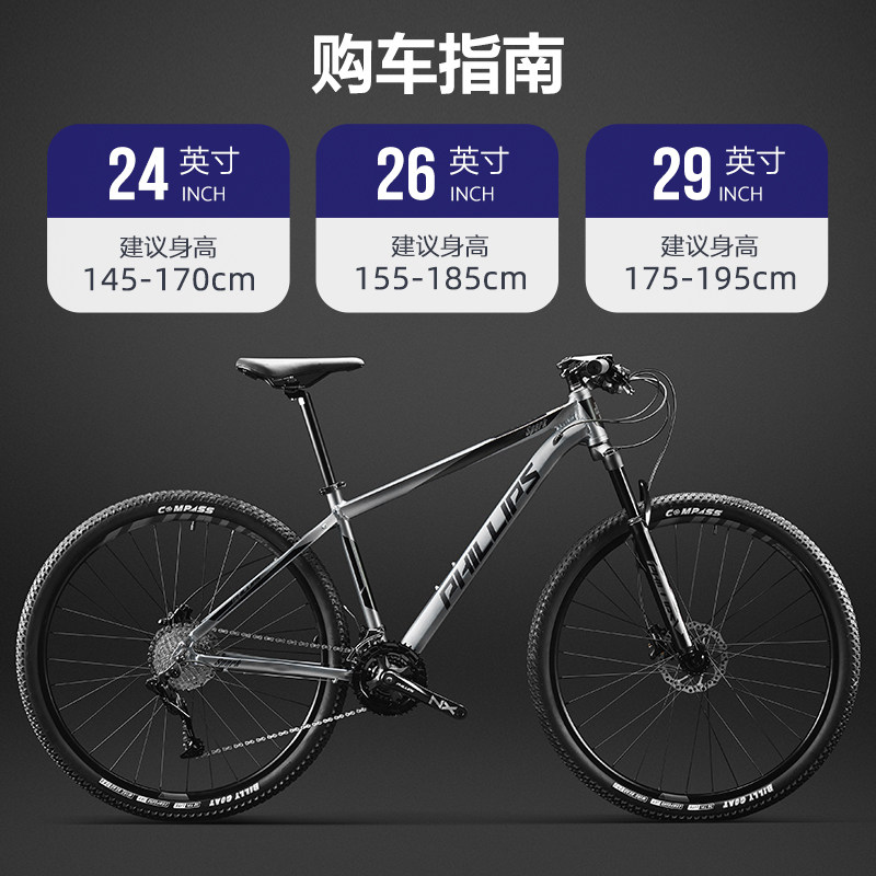 菲利普山地车自行车成人男士铝合金青少年女款式变速赛车减震单车