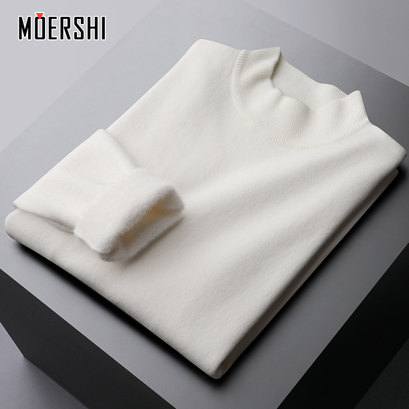 轻商务加绒毛衣男士秋冬季新款半高领百搭打底衫加厚保暖针织衫