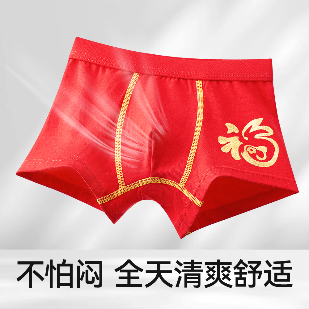 小龙人儿童内裤红色袜子全棉本命年男童纯棉四角底裤宝宝新年短裤