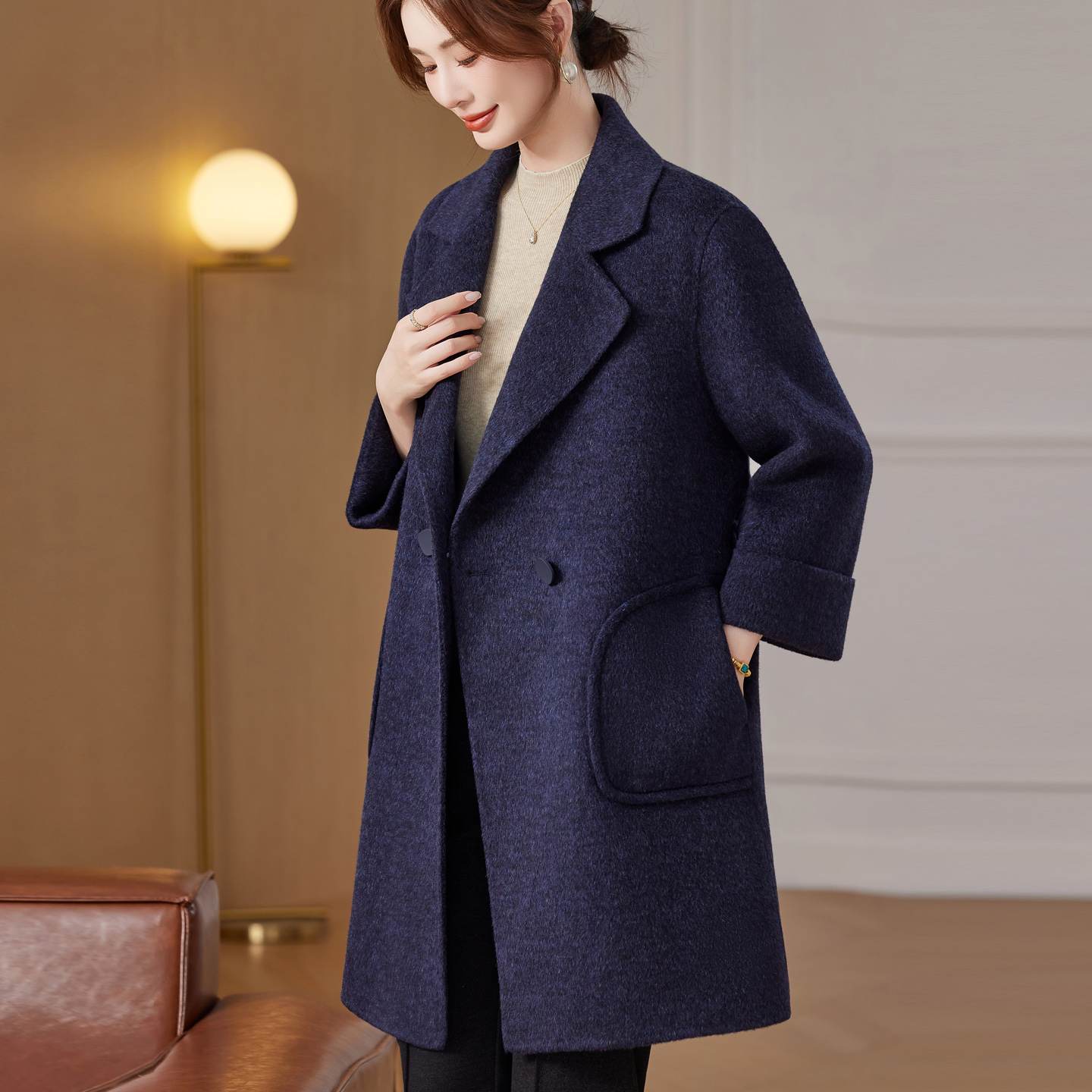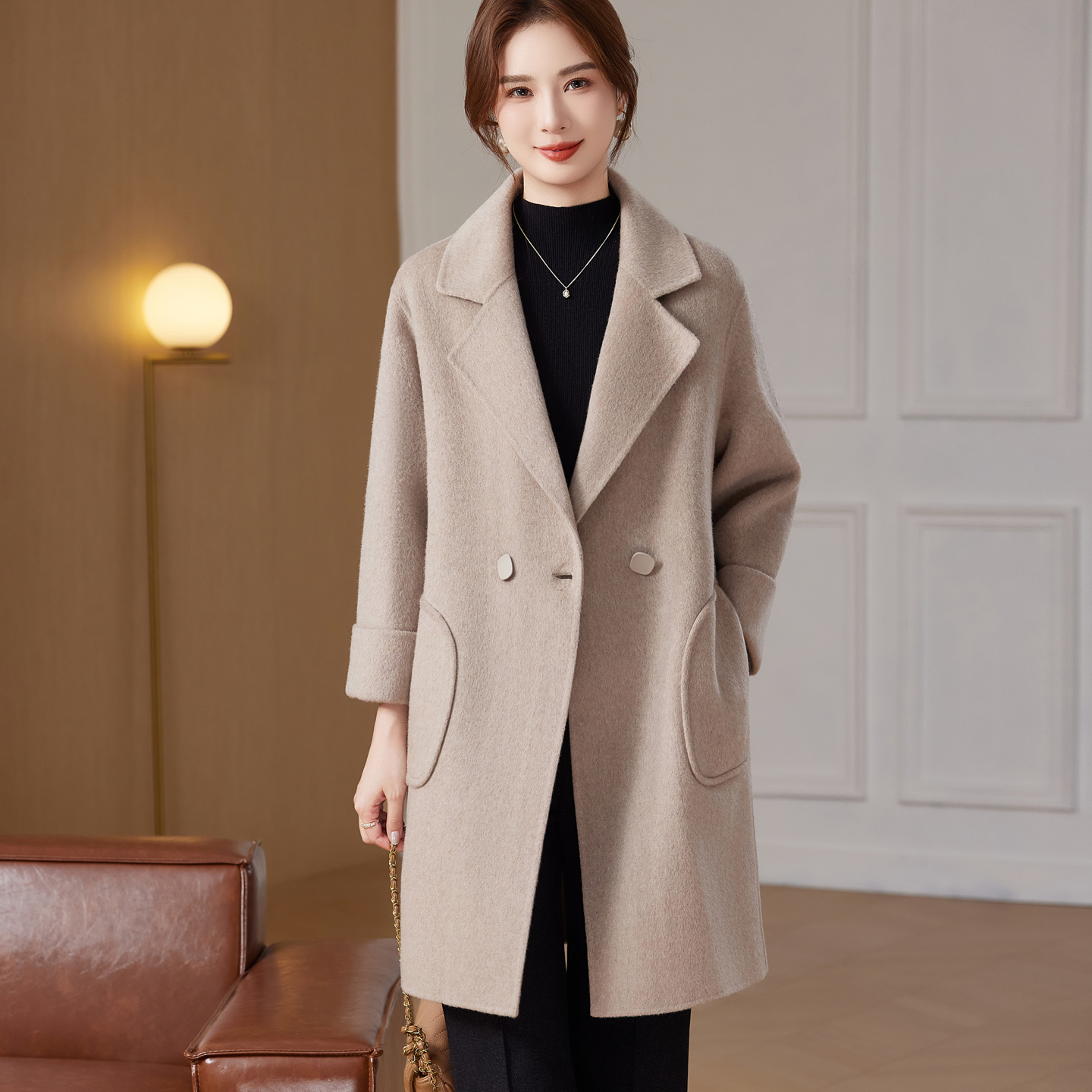 大码双面羊绒大衣西装羊毛呢外套