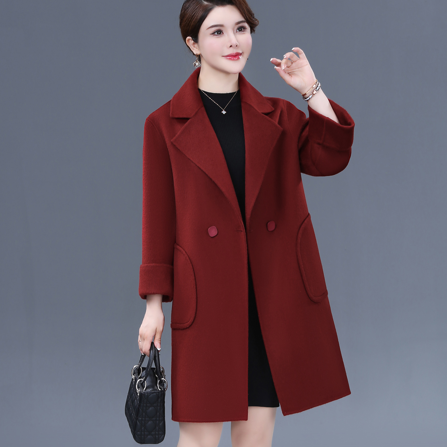 洋气妈妈双面羊绒大衣女秋冬新款大码呢子宽松西装羊毛呢外套厚款