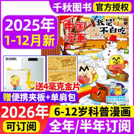 我是不白吃杂志2025年1-12月【全年/半年订阅送便携夹板/单肩包】2026年1-12月有文化/爱科学6-12岁中小学生中国漫画书历史喵过刊