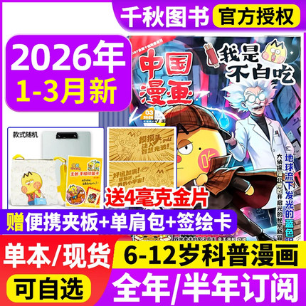 我是不白吃杂志2026年1-3月/2025年1-12月【全年/半年订阅送便携夹板/单肩包】有文化/爱科学6-12岁中小学生中国漫画书历史喵过刊