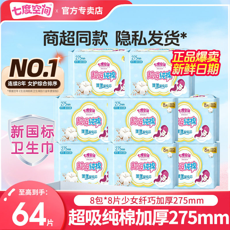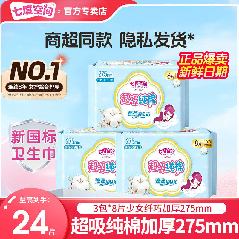七度空间卫生巾少女纤巧加厚275mm加长日用卫生巾组合装新日期