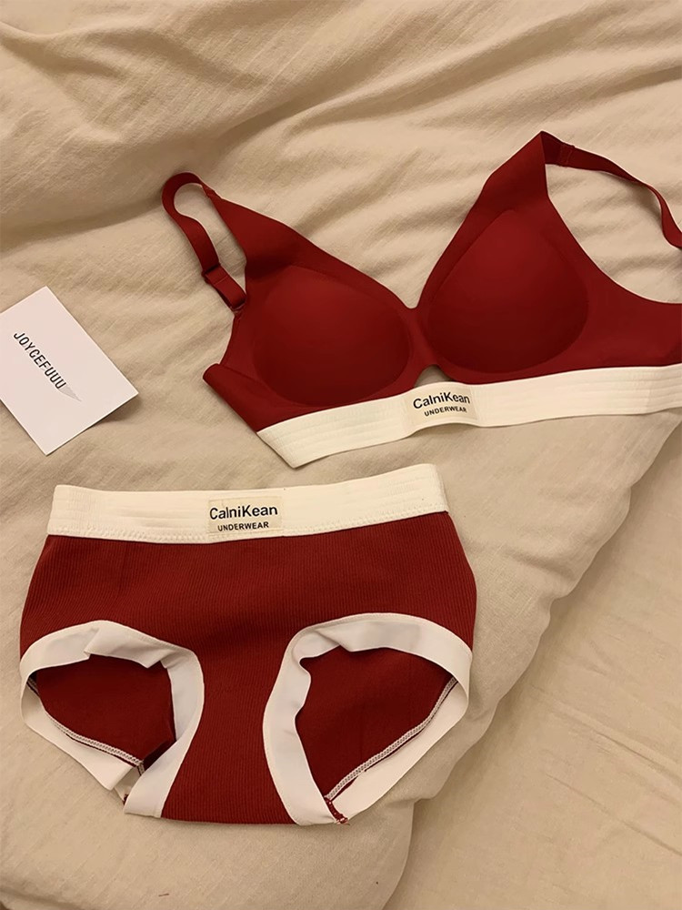 薄款无痕红色内衣女小胸聚拢无钢圈收副乳固定杯运动提拉文胸套装