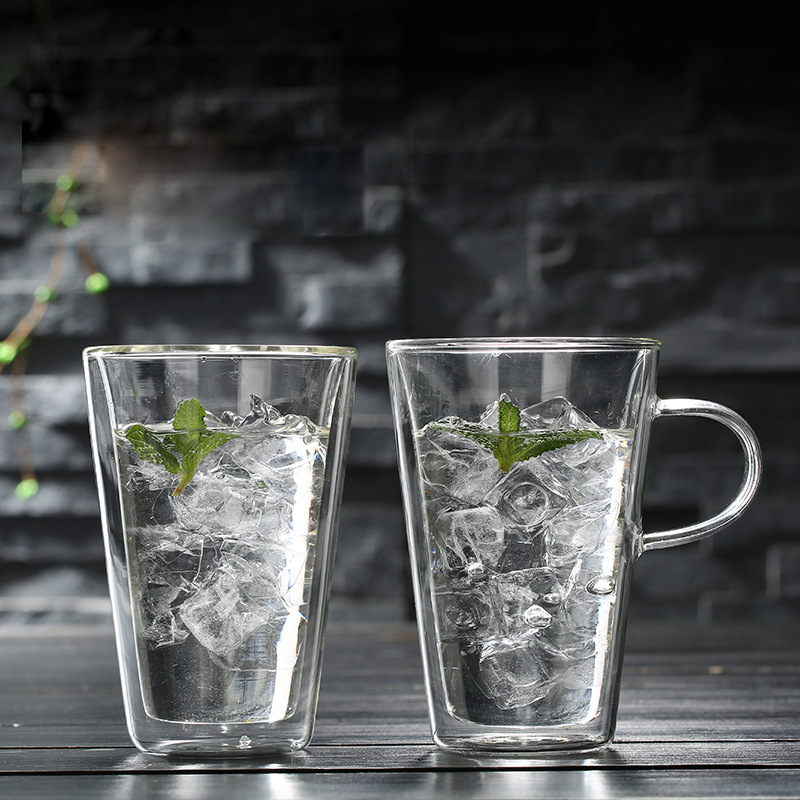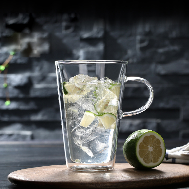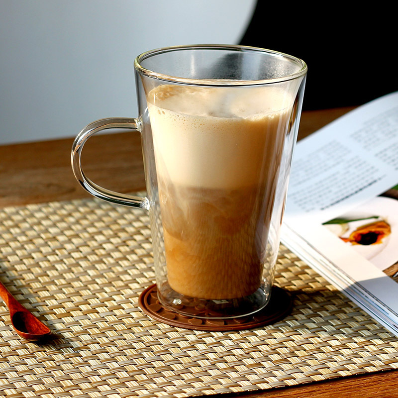 双层带把卡布奇诺咖啡杯透明水杯耐高温茶杯家用牛奶杯玻璃花茶杯