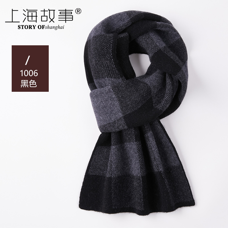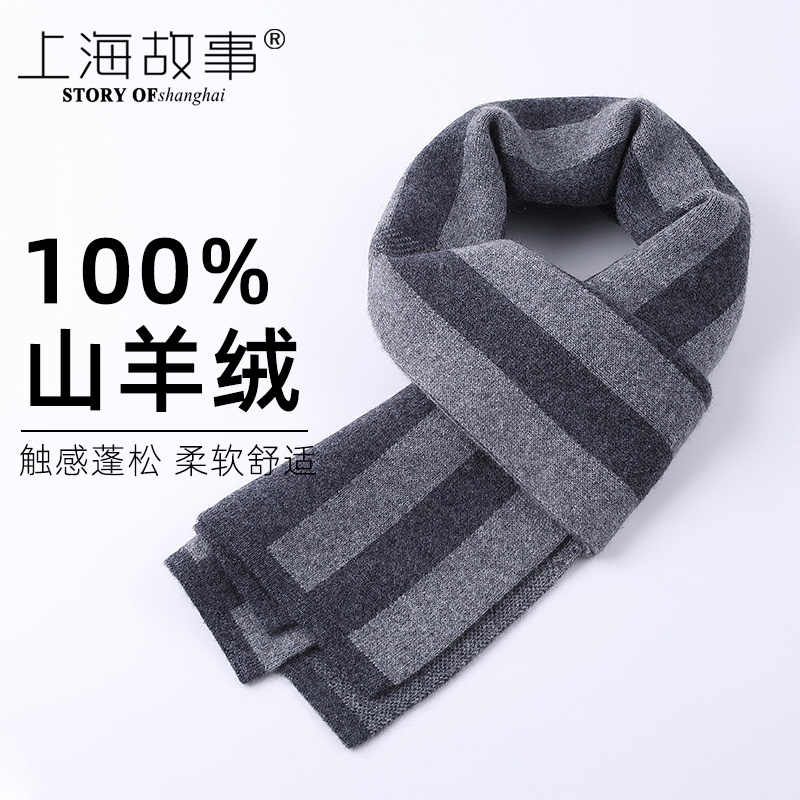 上海故事羊绒围巾男士冬季高档纯色百搭加厚保暖围脖男生日礼物