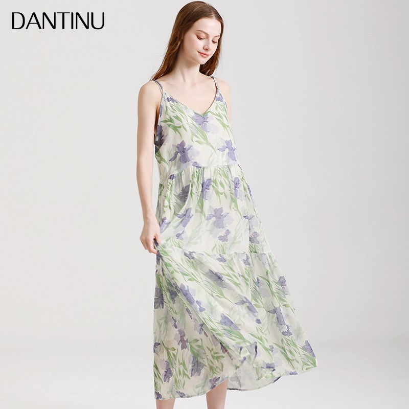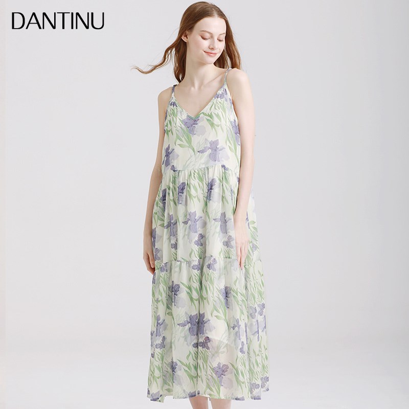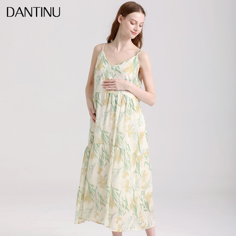 孕妇2025新款j时尚连衣裙套装夏季碎花吊带裙大码仙女长裙女两件