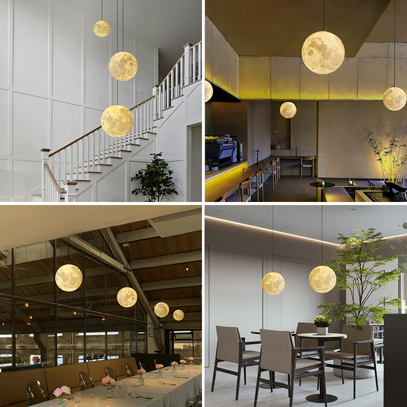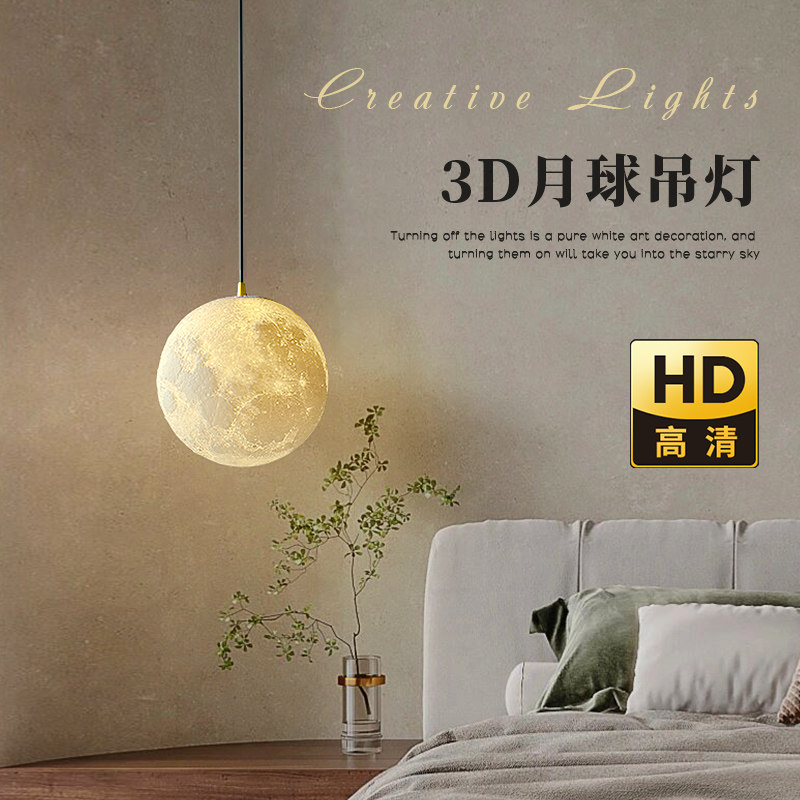 月球灯吊灯3d球形床头卧室磁吸免布线超大设计师创意圆球月亮吊灯