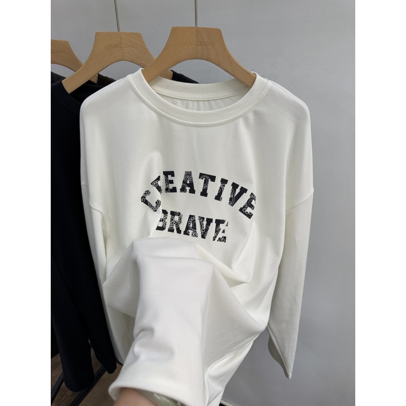 小王家23181秋冬新款韩版宽松大码胖mm休闲慵懒风字母长袖磨毛T恤