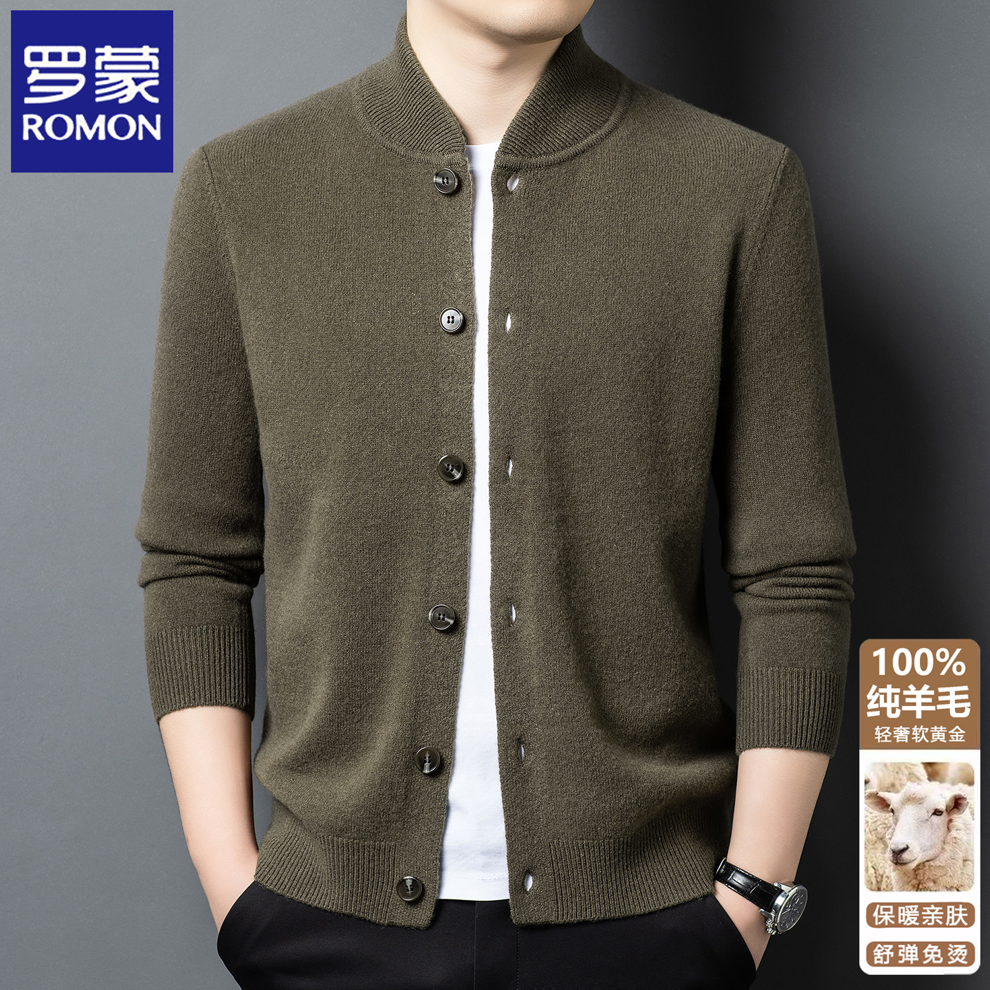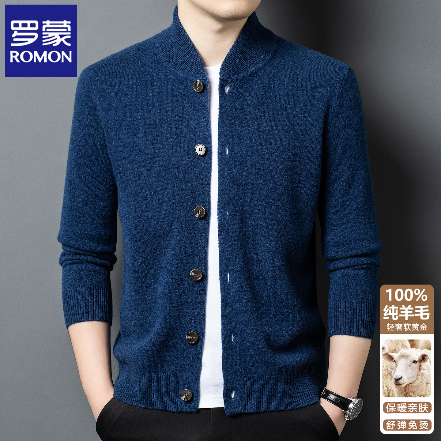 罗蒙2025秋冬季新款男士100%纯羊毛加厚针织衫休闲爸爸装开衫毛衣