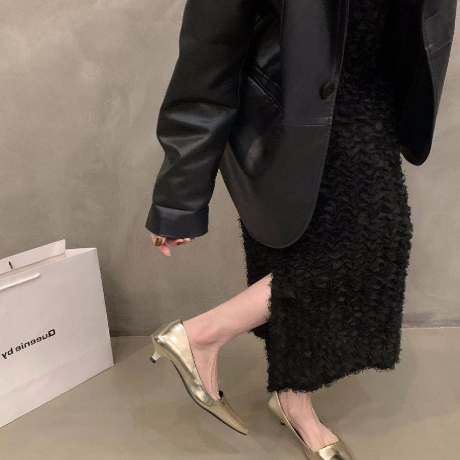 潮牌法式小猫跟银色高跟鞋仙女鞋子2025新款春秋气质金色尖头单鞋
