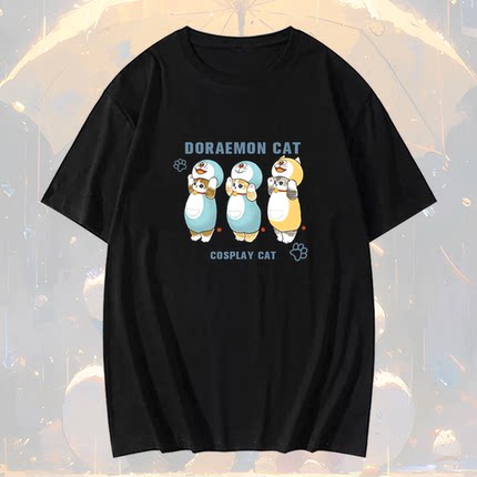 哆啦梦机器猫小叮当联名猫猫卡通可爱情侣男女定制半袖短袖T恤衫
