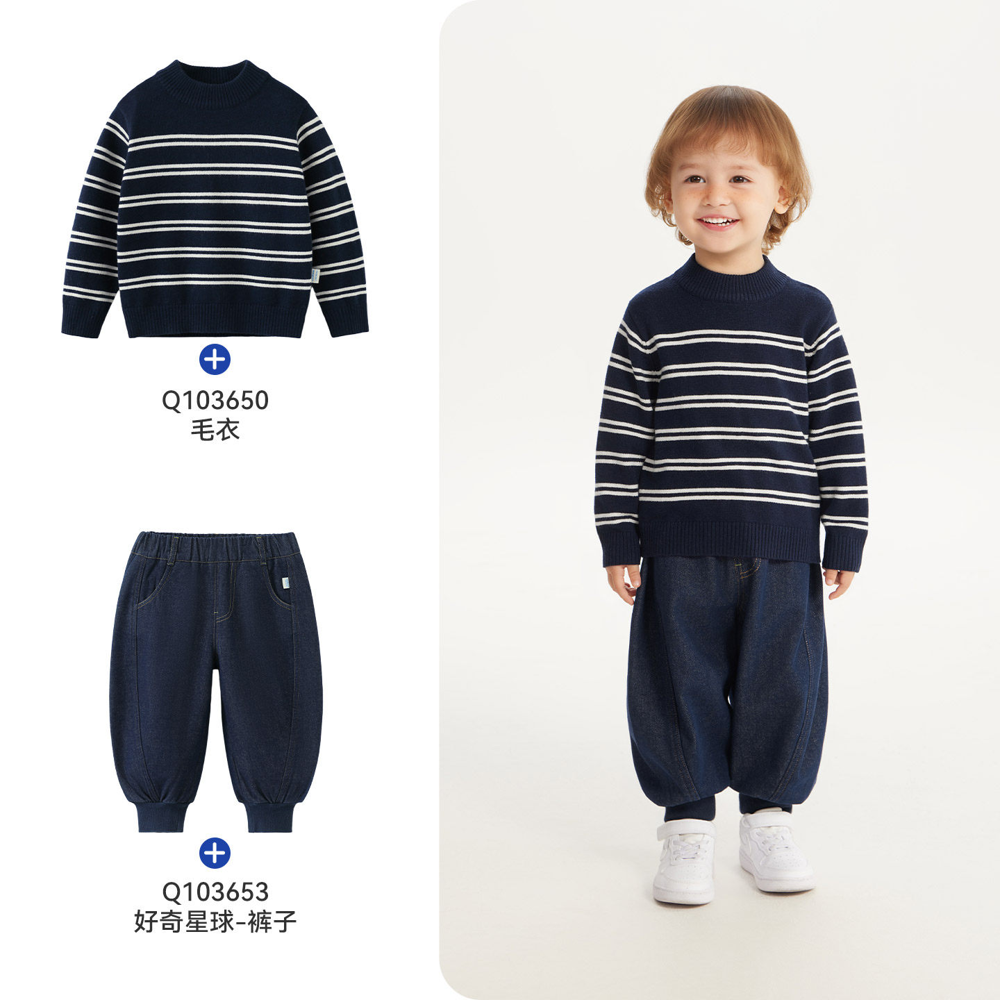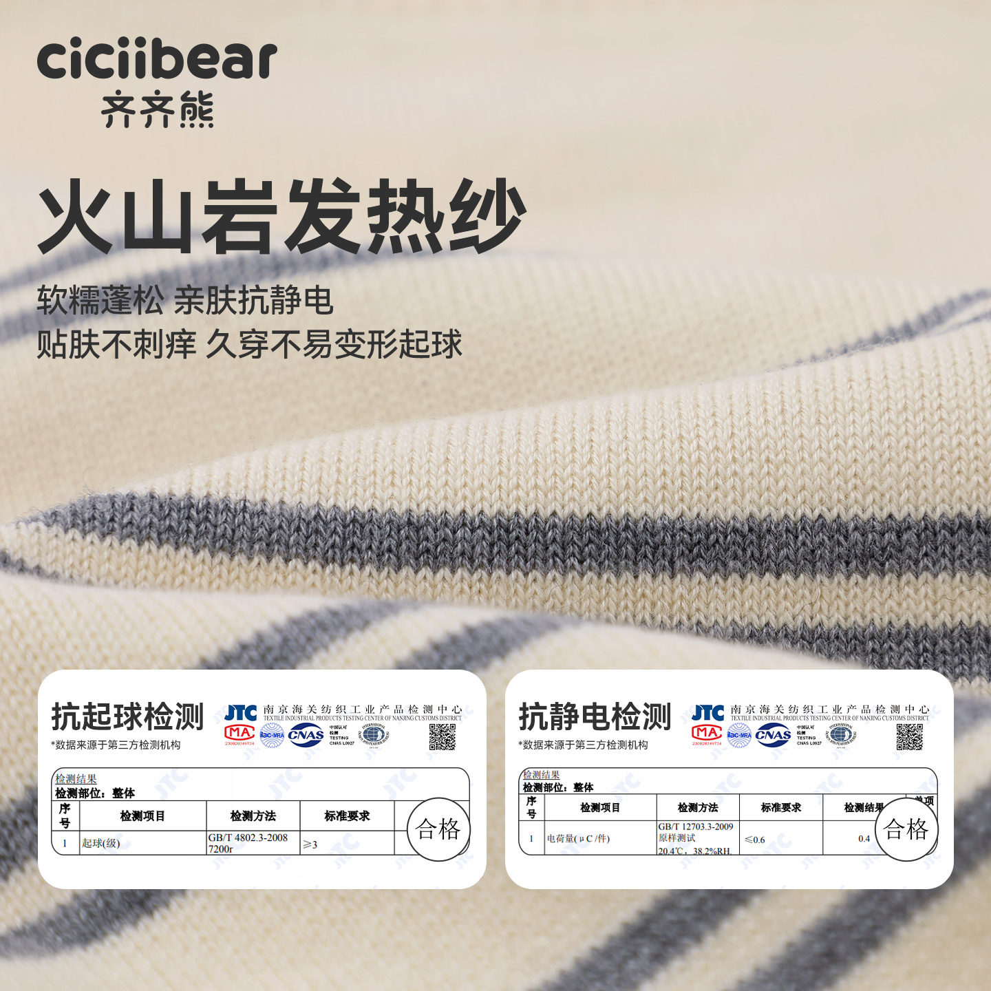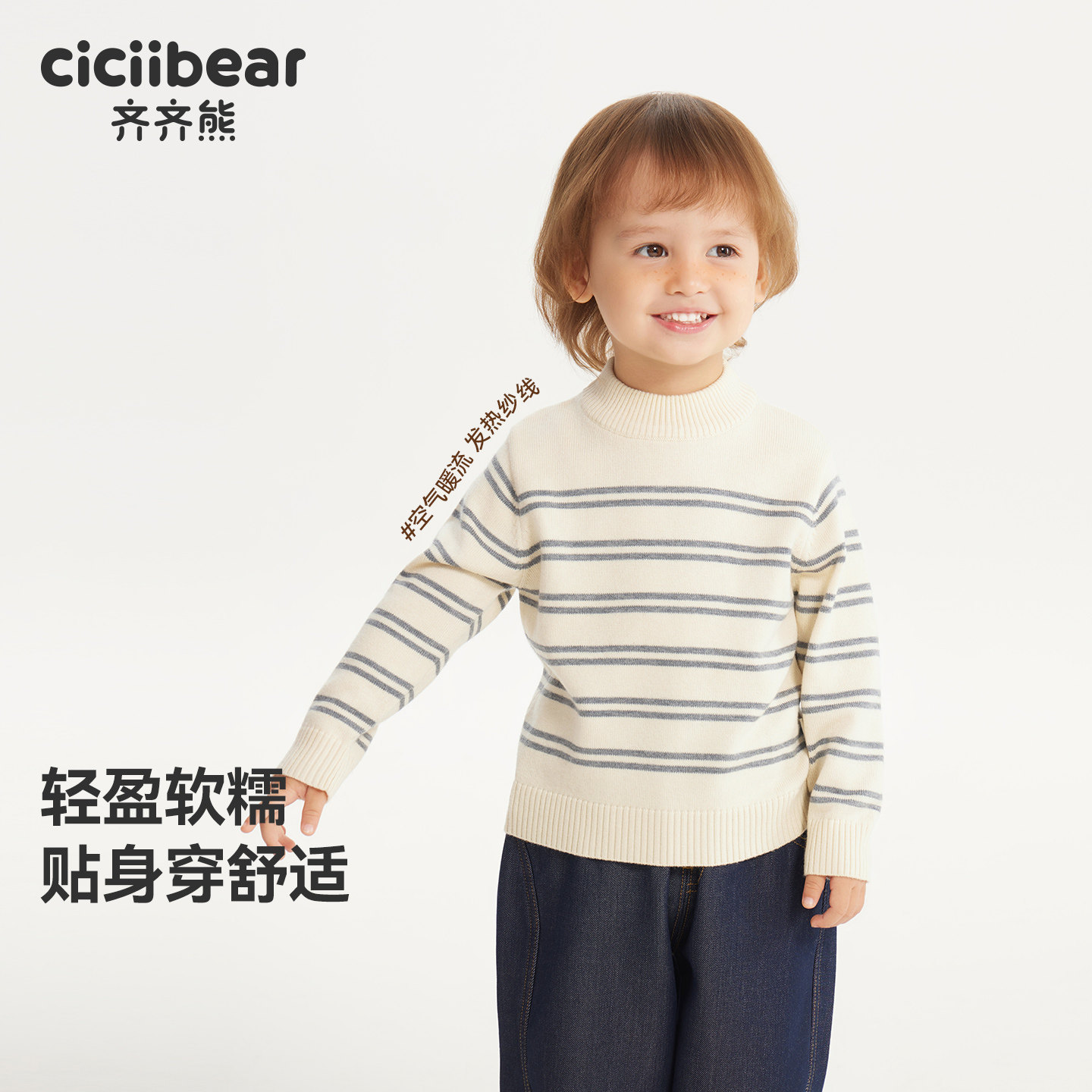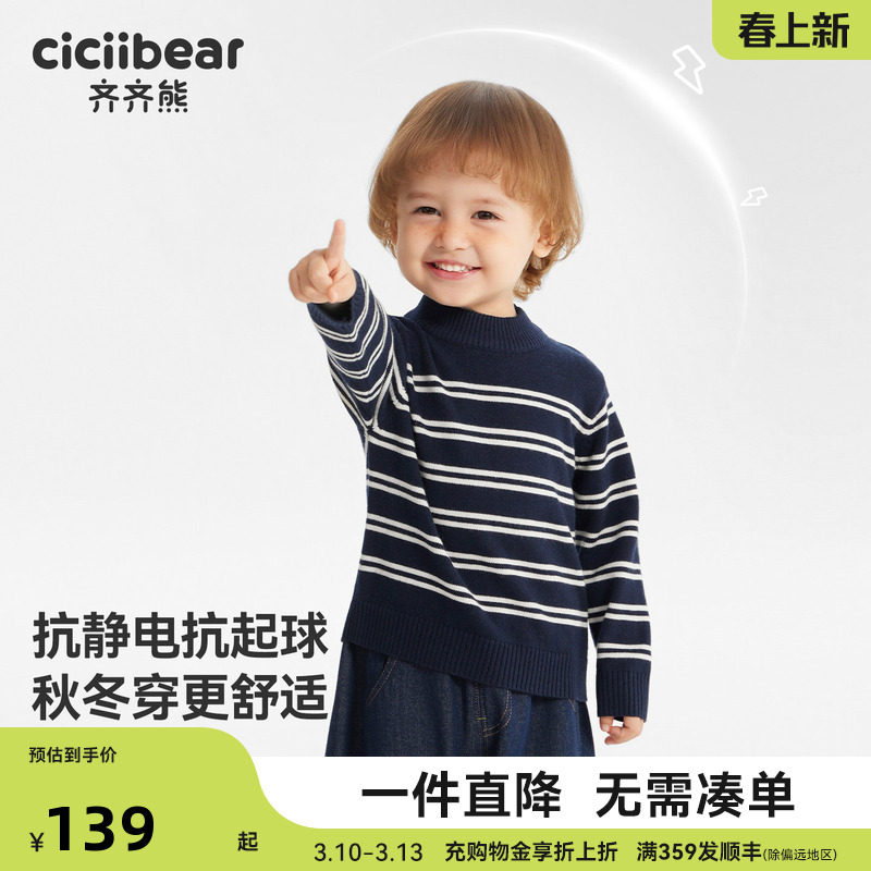 【抗静电起球】齐齐熊条纹毛衣