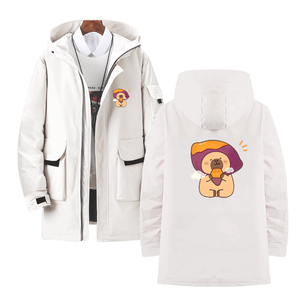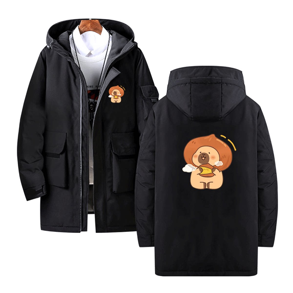 卡皮巴拉卡通秋日系列周边联名男女青年秋冬连帽外套可定制羽绒服