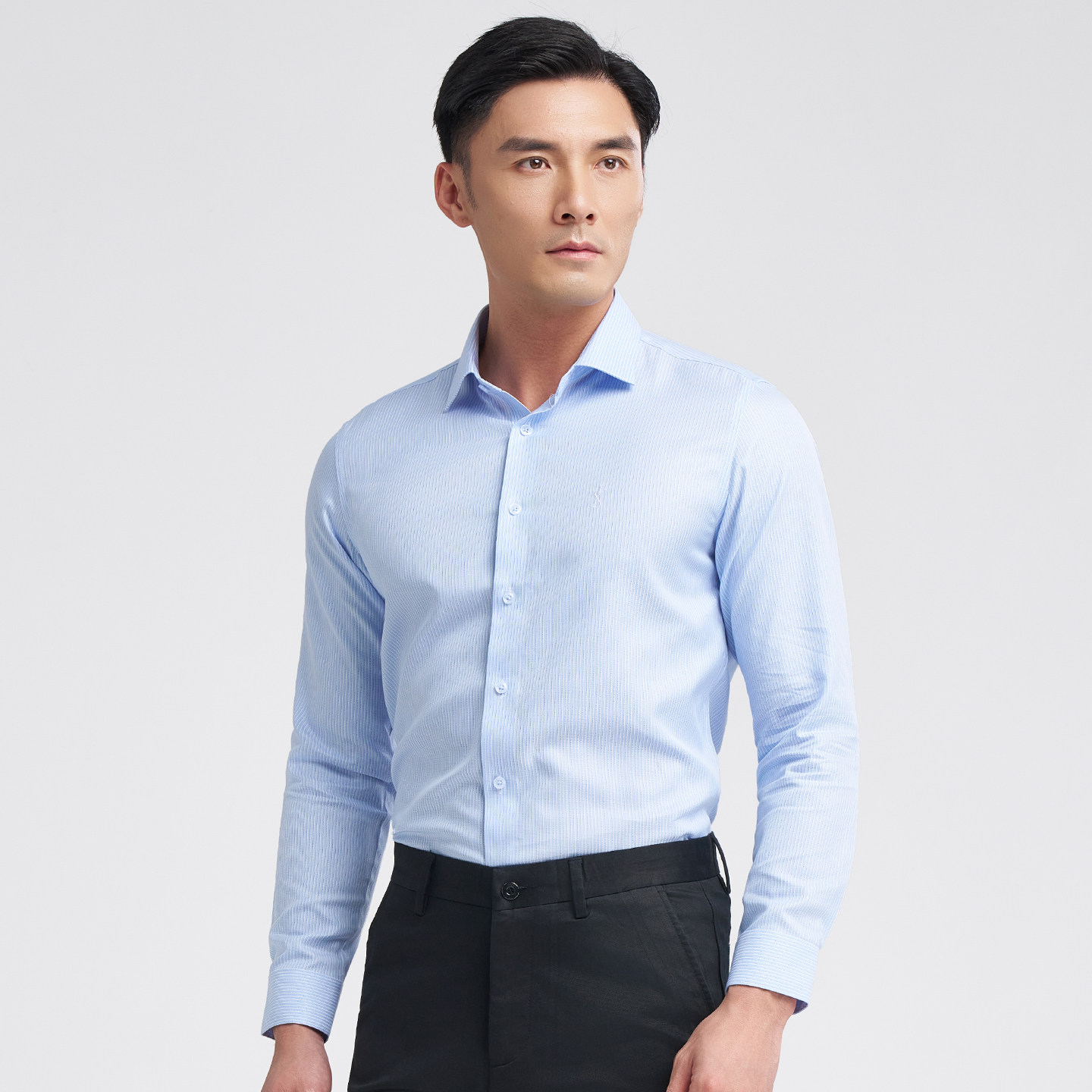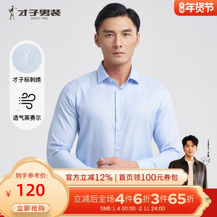才子男装莱赛尔高端长袖衬衫男2025春季新款修身商务正装蓝色衬衣