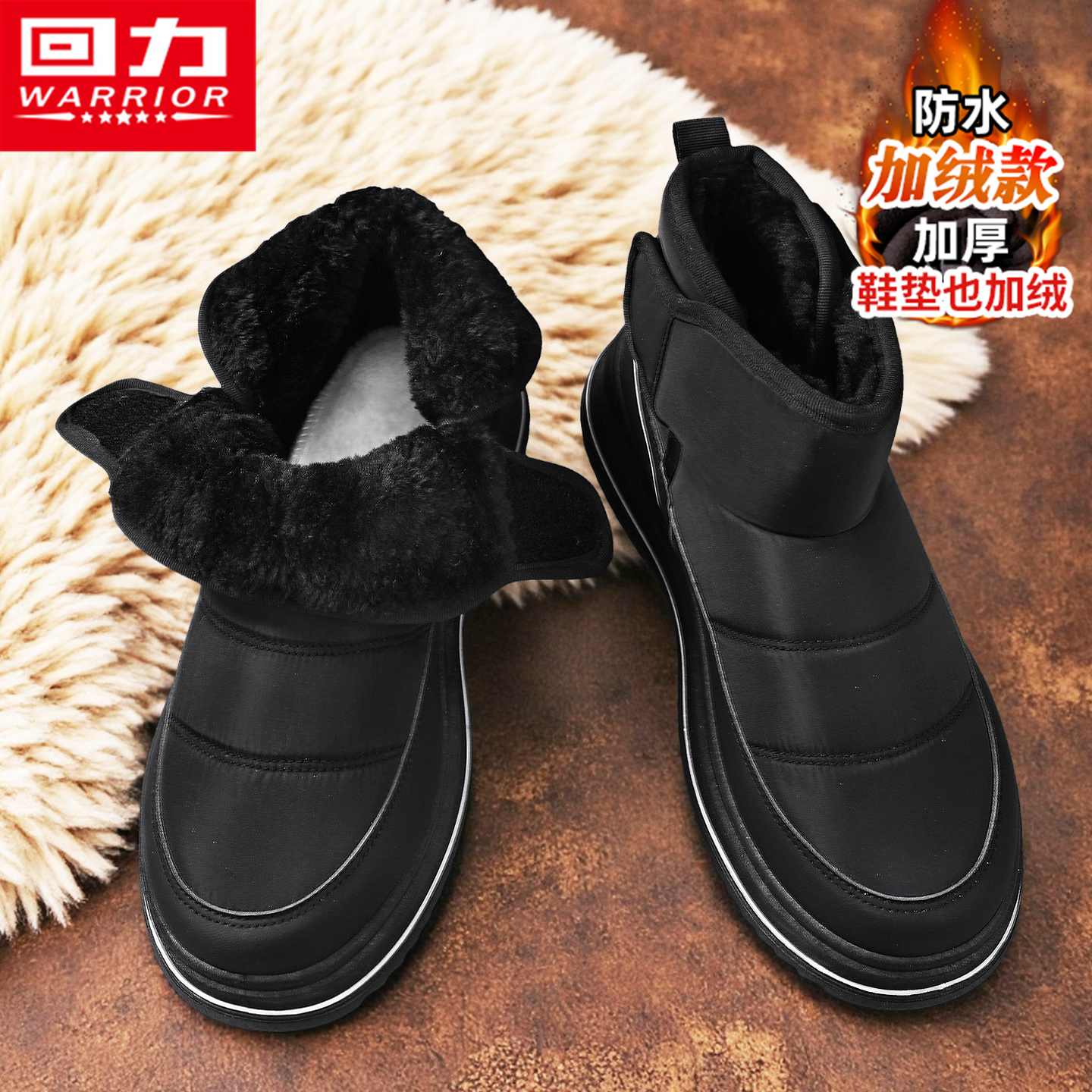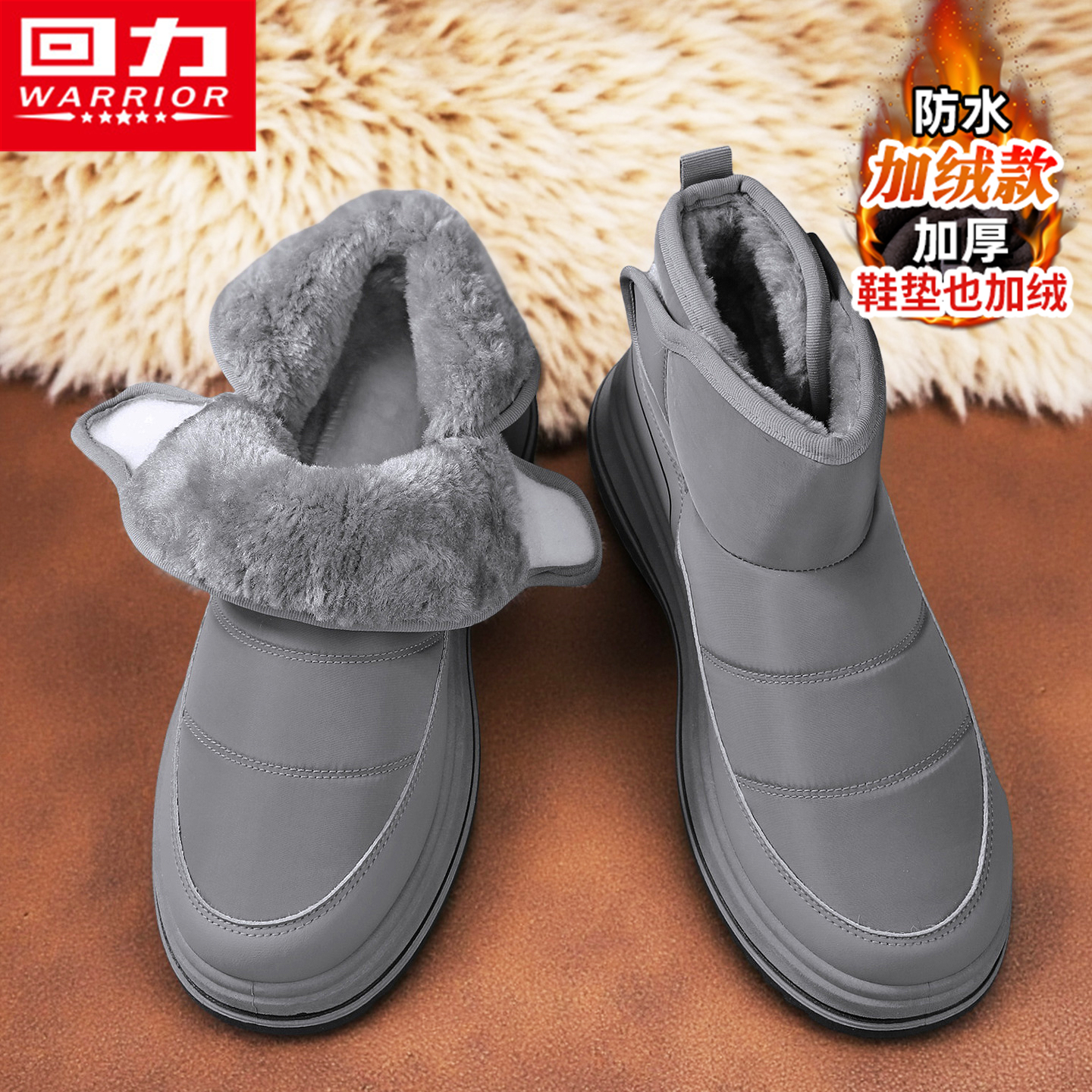回力棉鞋男款冬季加绒加厚皮毛一体保暖防滑防水青少年厚底雪地靴