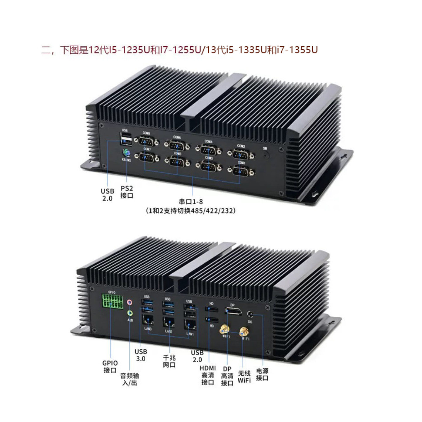 占美酷睿13代3网8串微型无风扇嵌入式视觉机器人迷你电脑工业主机