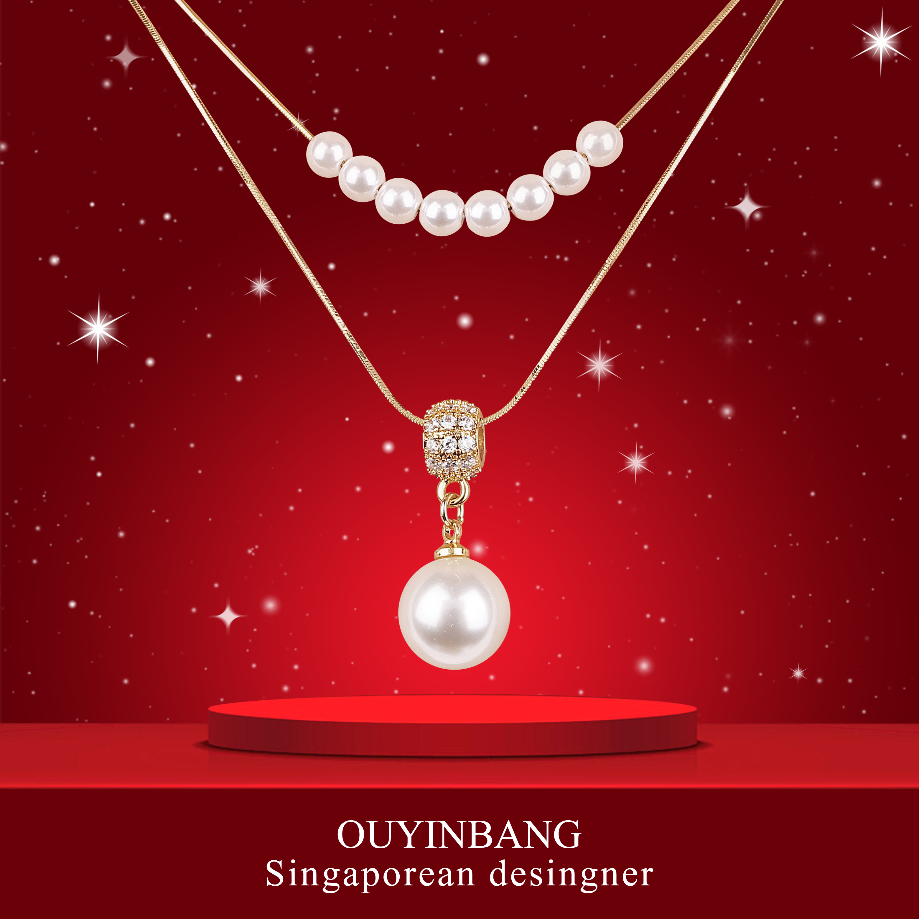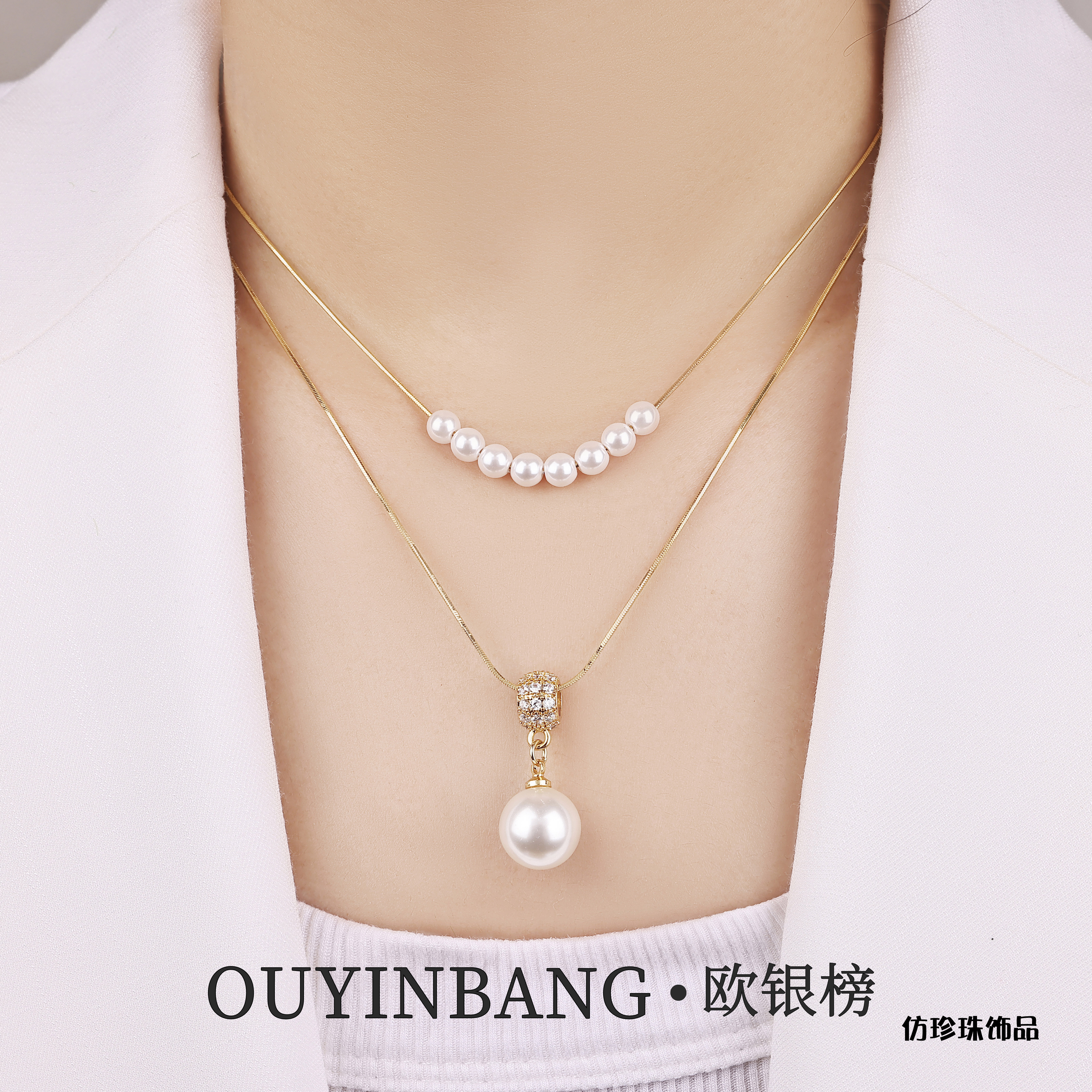 新款赫本王妃高定珠双项链生日礼物锁骨链轻奢高级感双层叠戴项链