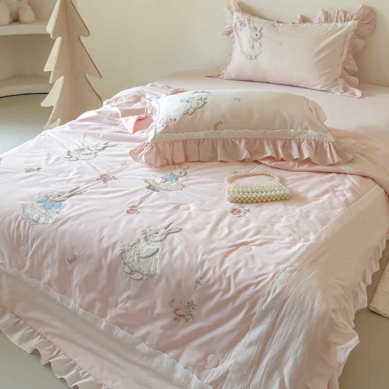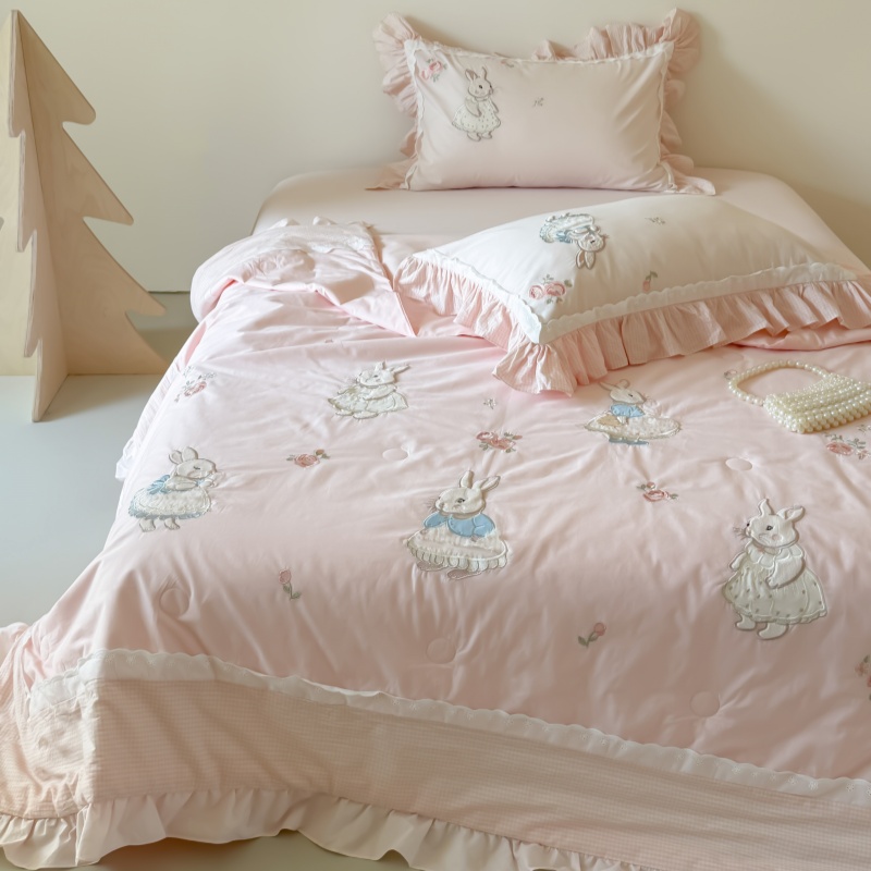 卡通夏季公主风小兔子纯棉水洗棉夏凉被四件套空调被全棉儿童夏被