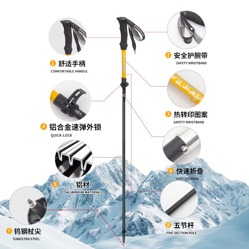 航空铝5节伸缩登山手杖超轻专业登山杖可伸缩徒步折叠男女登山杖
