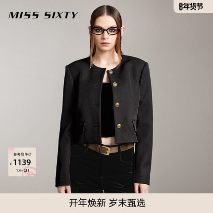 Miss Sixty休闲外套女法式小香风圆领黑色简约气质高级感通勤