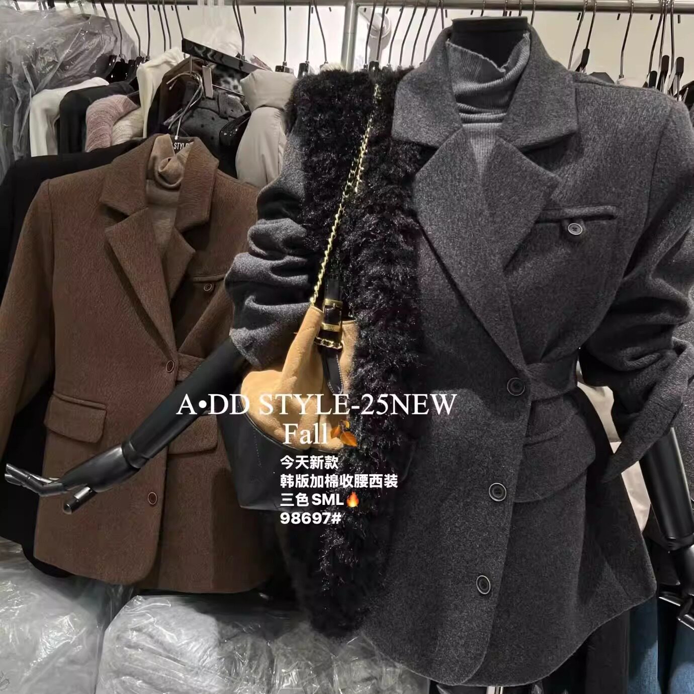 ADD西装外套2025冬季新款气质显瘦单排扣收腰设计感毛呢西服外套