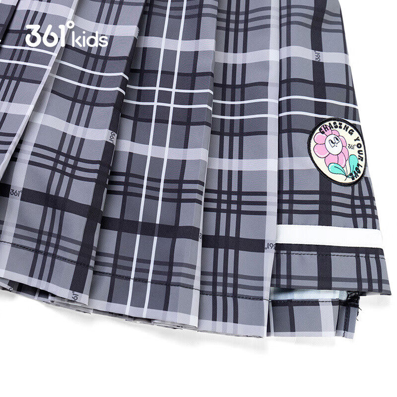 361度童装女童梭织短裙2025秋季新款中大童学院风格子透气百褶裙