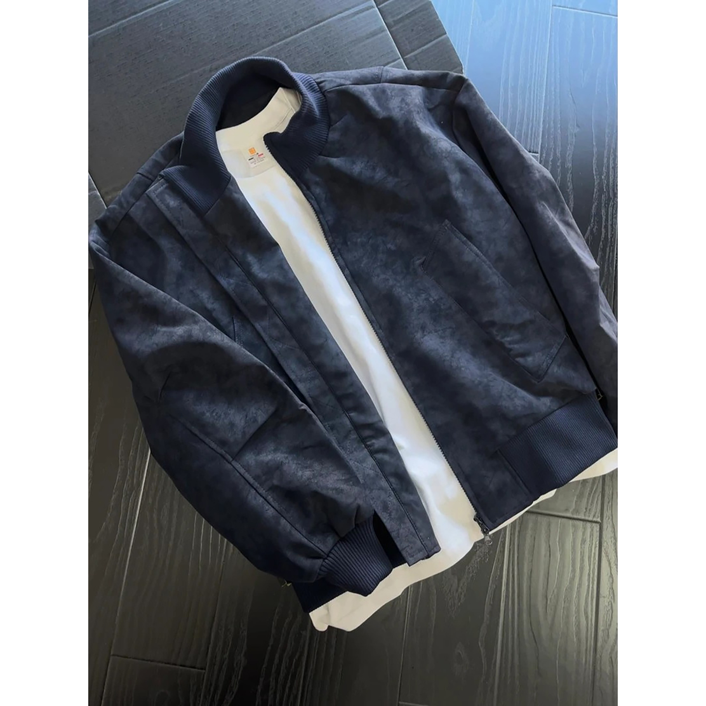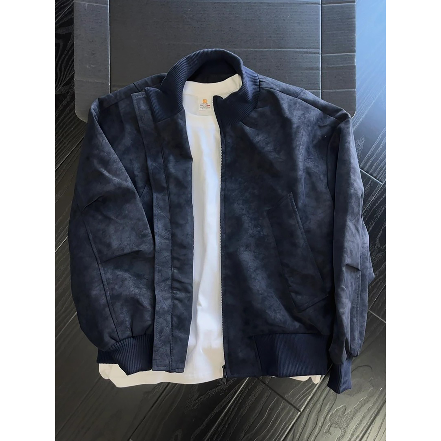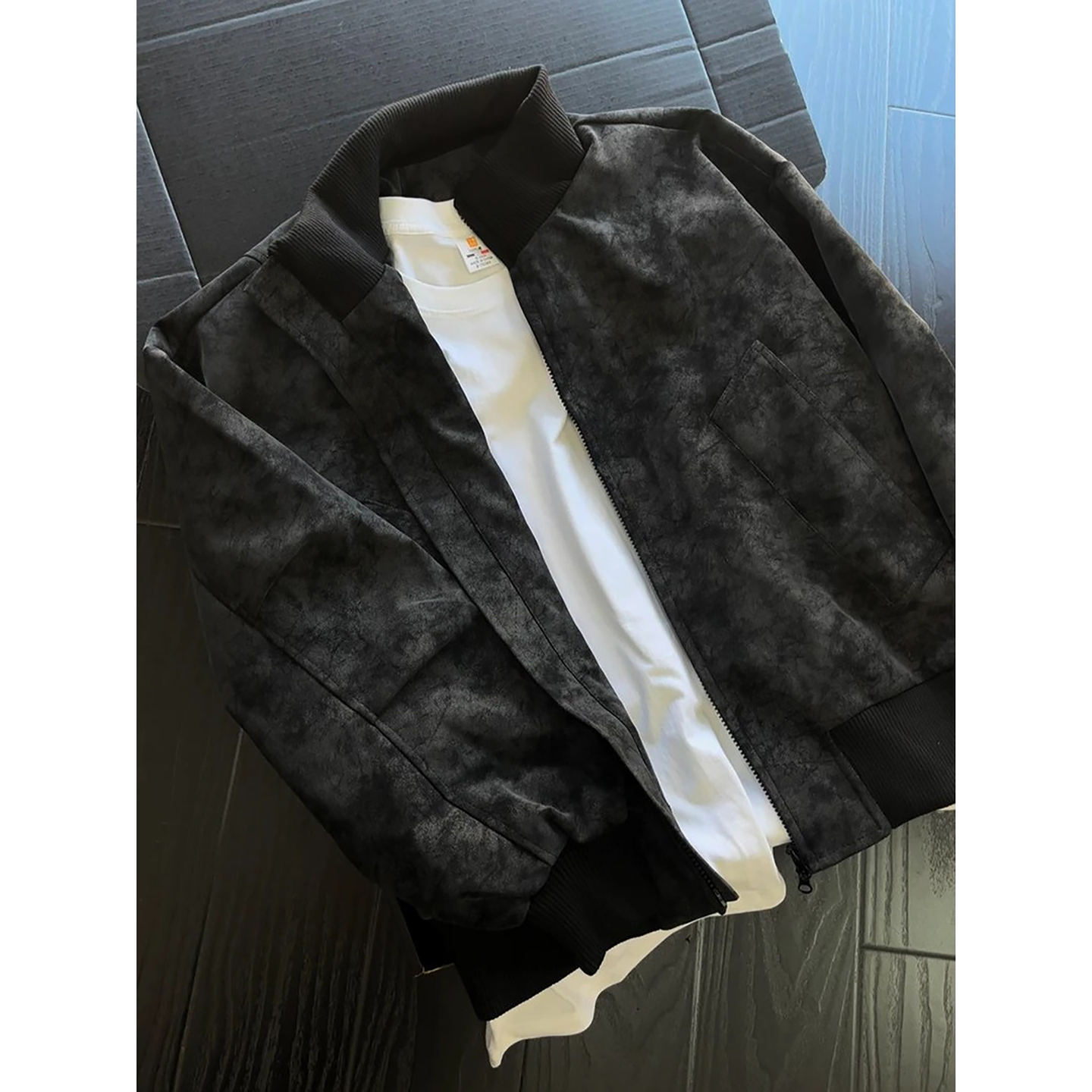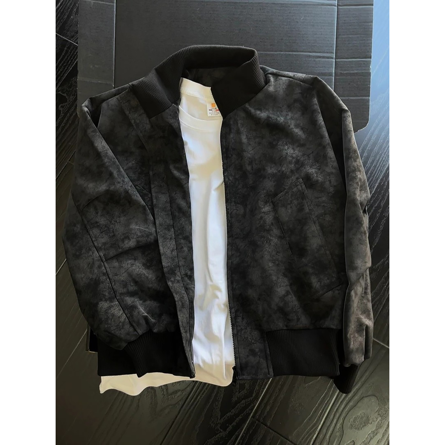 雾面扎染短款皮衣外套男款美式复古boxy版型机车服痞帅立领棒球服
