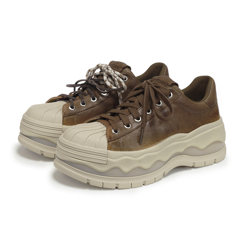 杨超越宋亚轩同款VITTORIOVENTURA薇薇燃 牛皮厚底贝壳板鞋