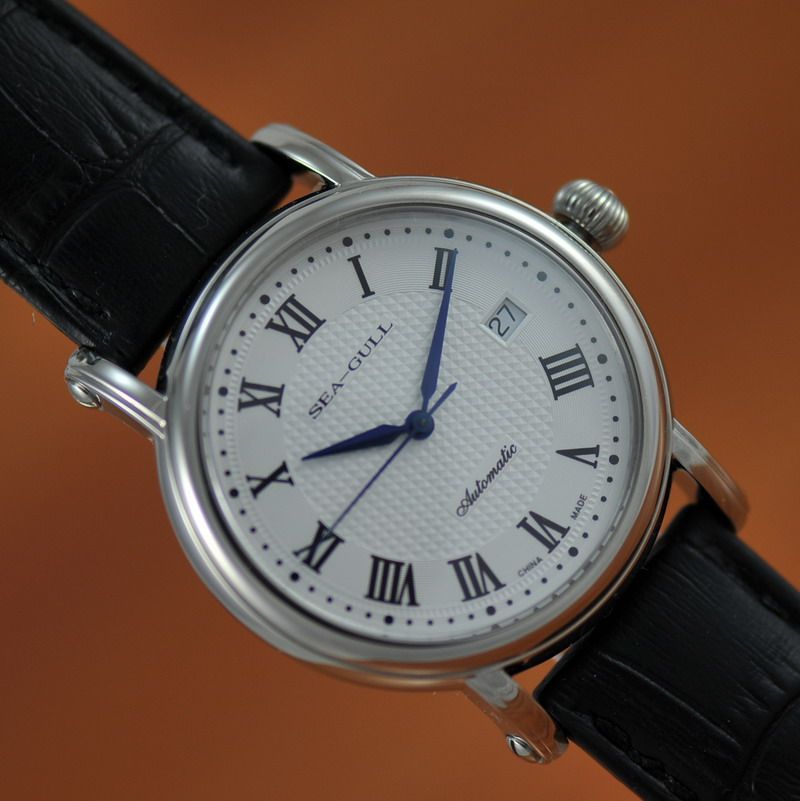 海鸥表819.368复古机械全自动男士手表烤蓝针经典款送鳄鱼皮表带