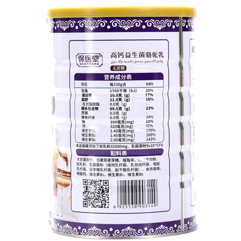 优医堂罐装高钙益生菌驼奶粉