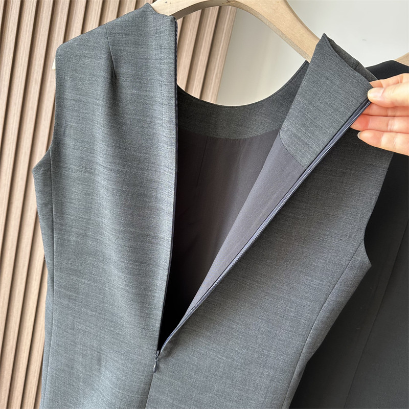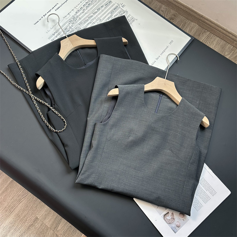 羊毛混纺通勤圆领西装背心裙