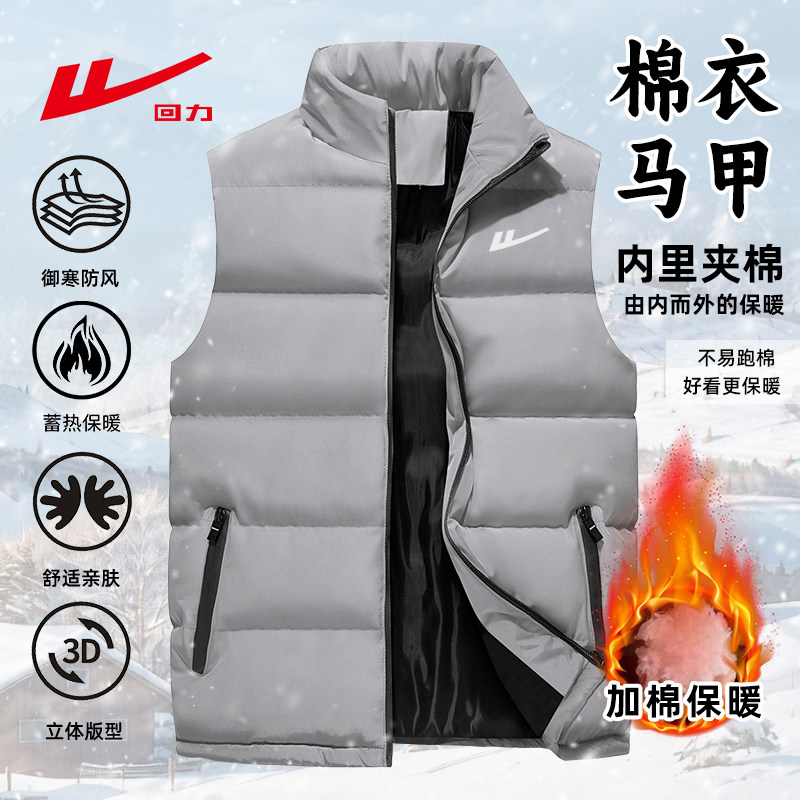 回力羽绒棉马甲男秋冬2025新款轻薄坎肩外穿背心男士保暖无袖外套