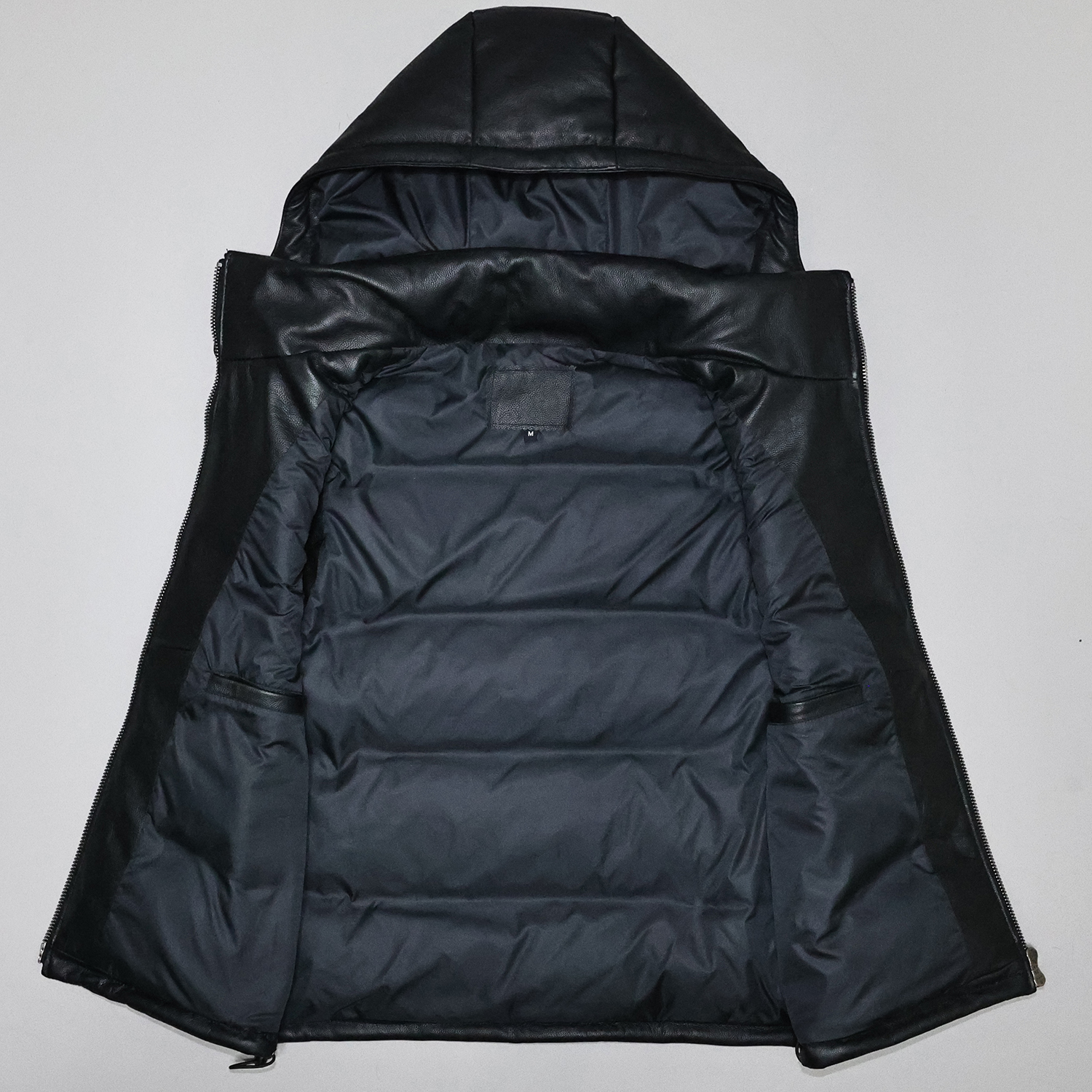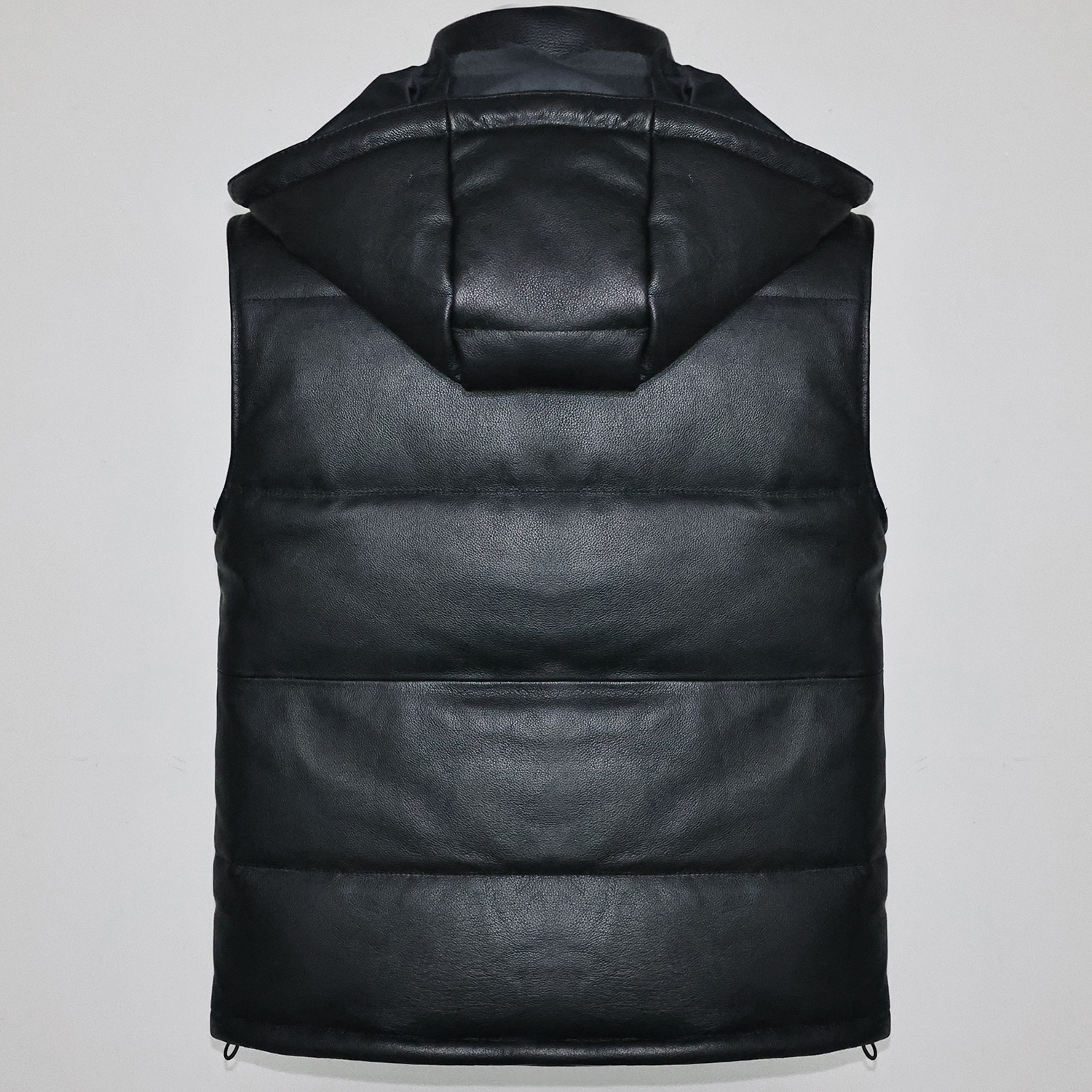 男女真皮羽绒防寒服马甲头层牛皮衣修身脱卸帽立领休闲背心坎肩阴