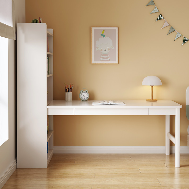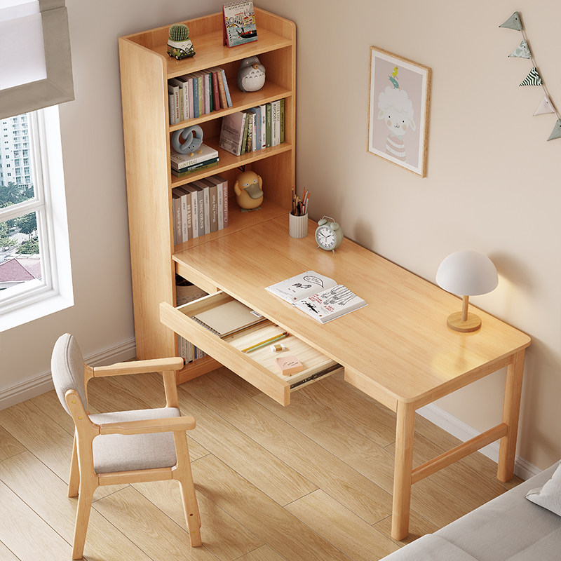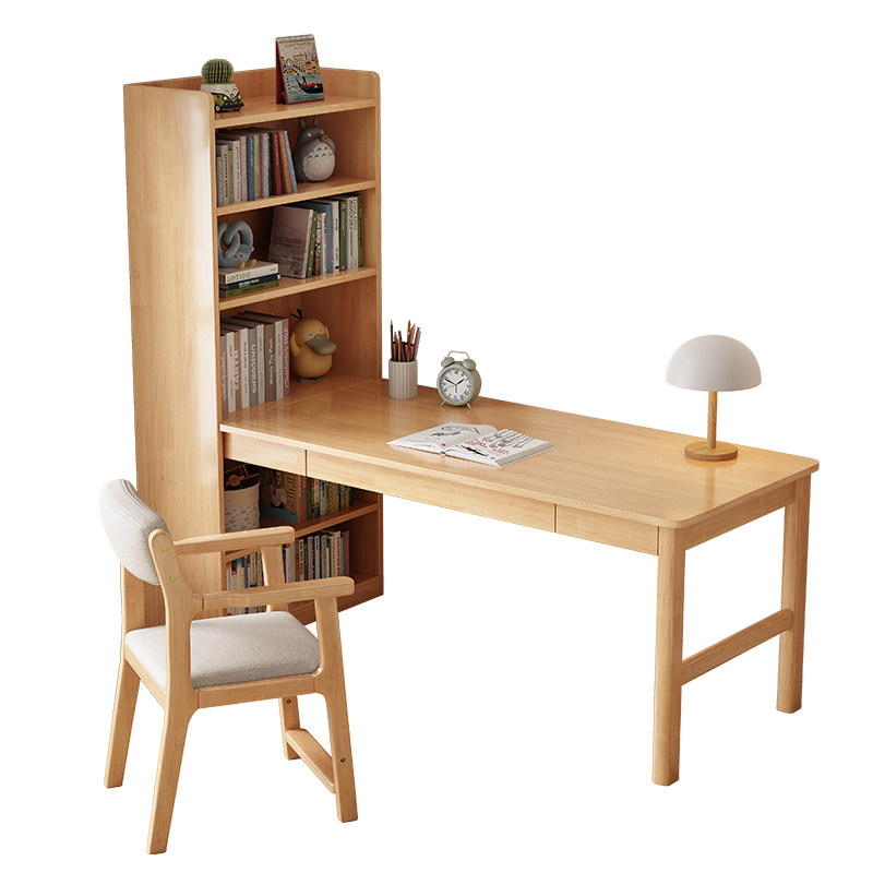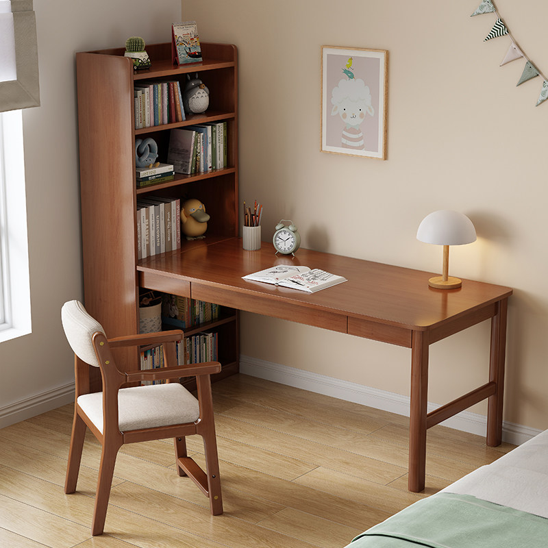 速发实木桌书家用书墙一体儿童写字桌卧室转角办公桌子书房靠柜电