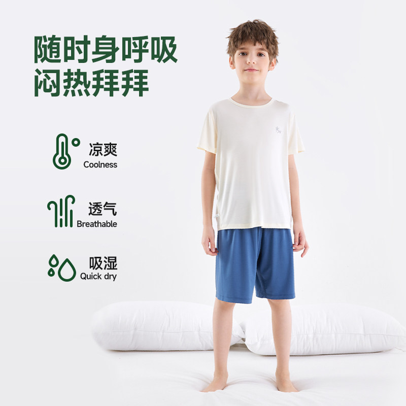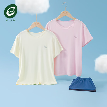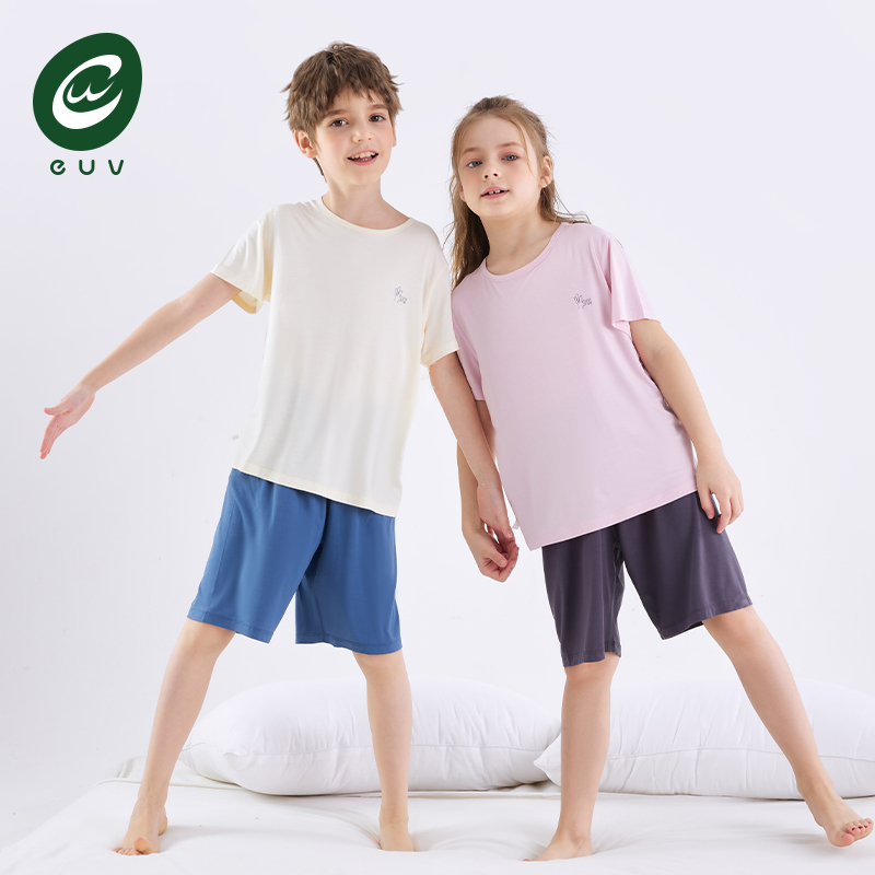euv夏季植物肌短袖儿童睡衣