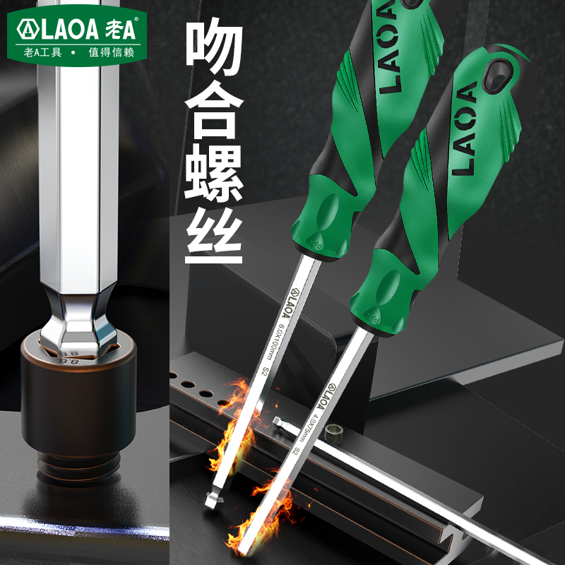 老A S2合金钢球头起子螺丝批 平头内六角螺丝刀家用汽车维修工具