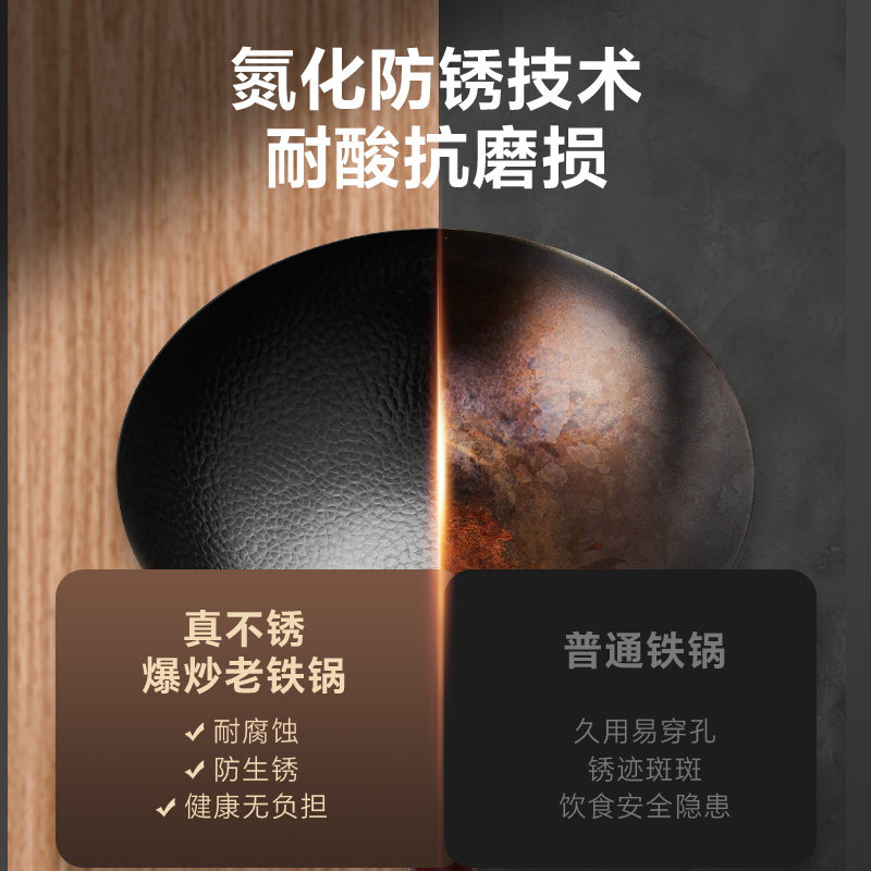 苏泊尔无涂层锤纹老式传统铁锅