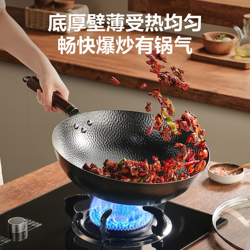 苏泊尔锤纹铁锅家用炒菜锅无涂层炒锅老式传统圆底铁锅燃气灶适用