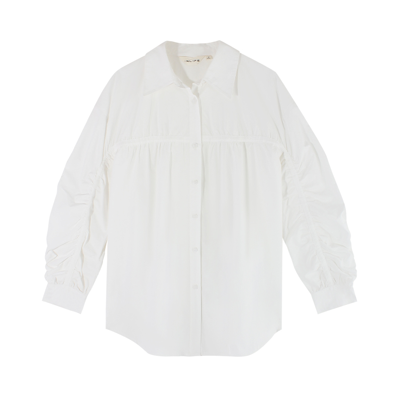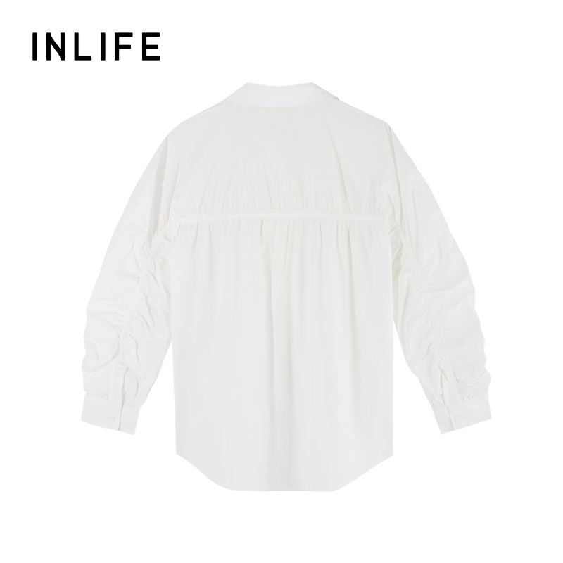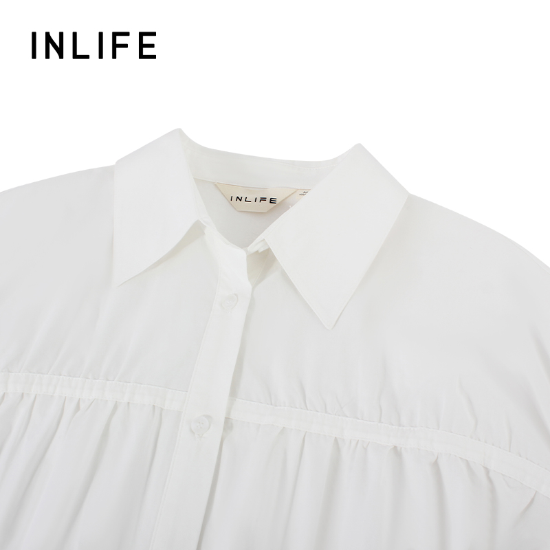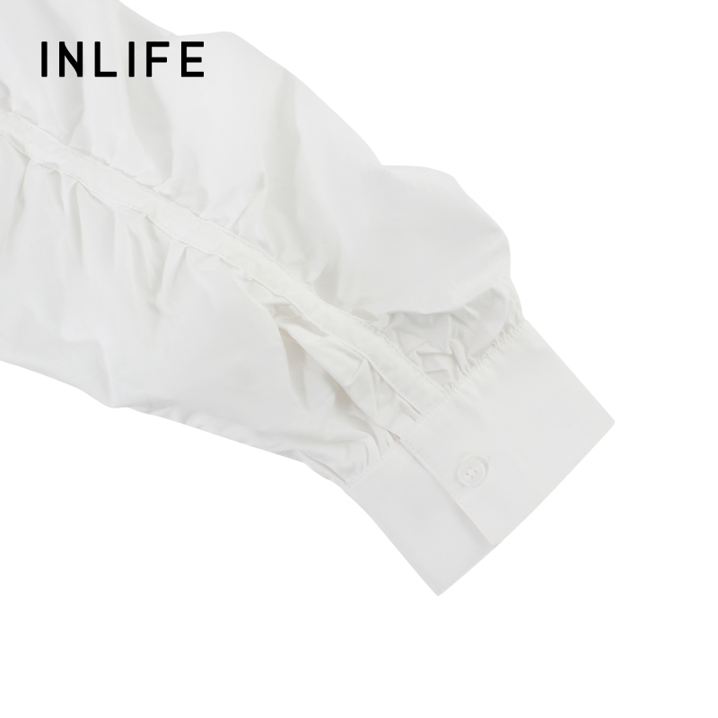 伊纳芙纯棉白色长袖衬衫休闲衬衣