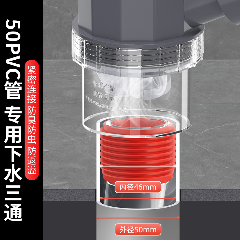 下水管三头通接头洗衣机扫地机烘干机接50排水管用多路排水分水器