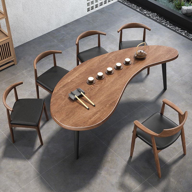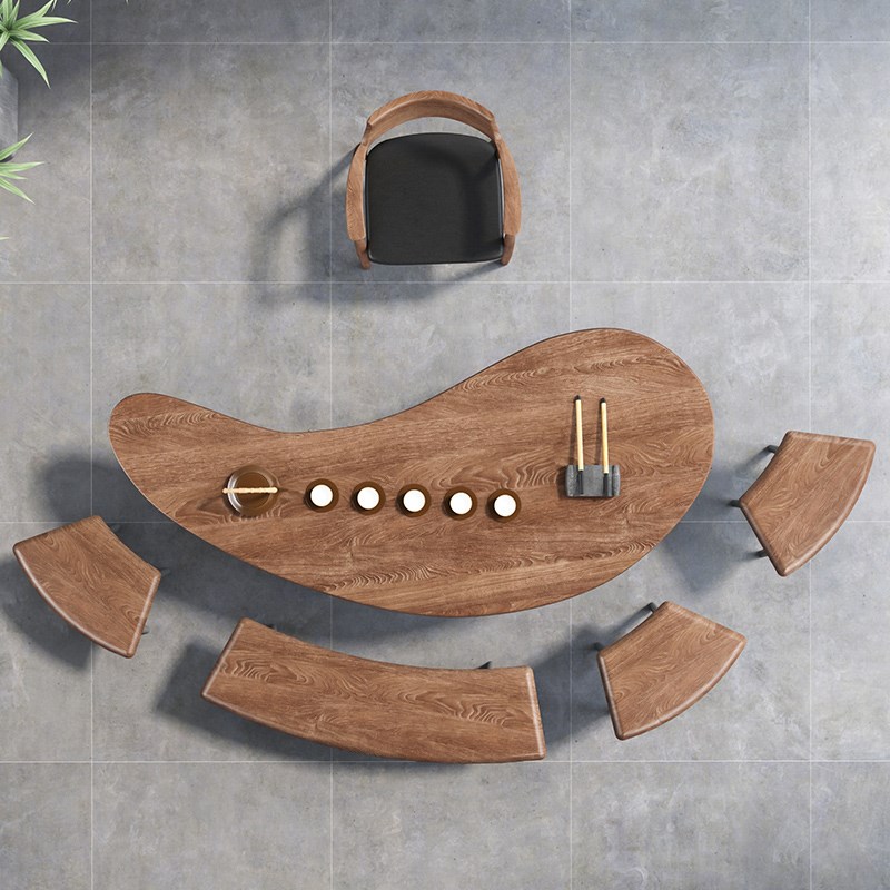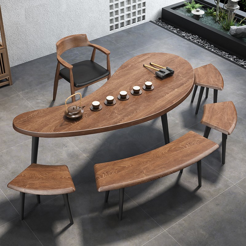 实木茶桌简约现代家用阳台弧形喝茶桌新款异形桌原木泡茶桌椅组合
